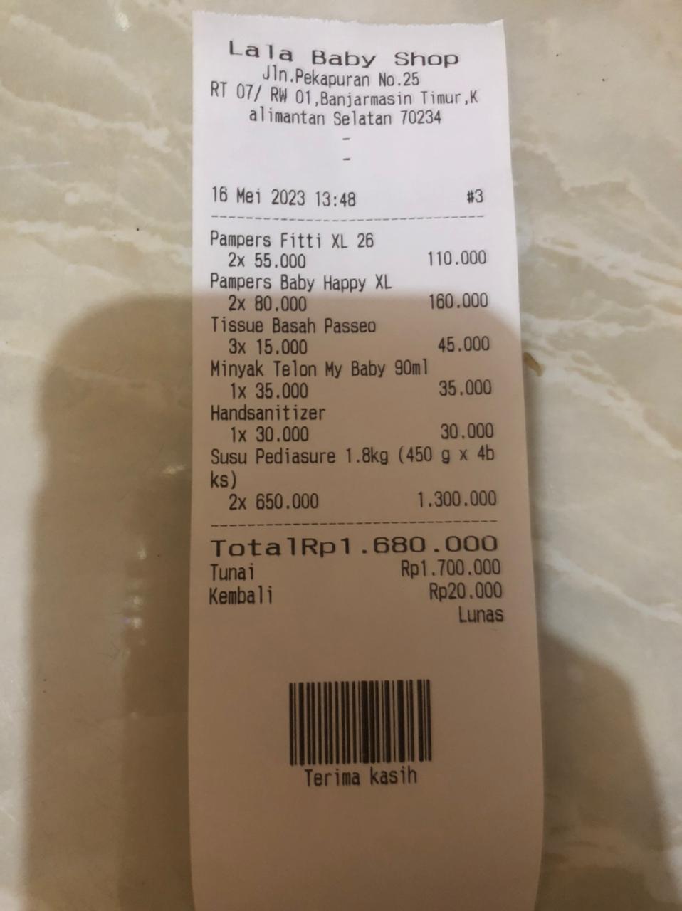 Untuk Beli stok susu,pampers,tisu kering,tisu basah,sabun mandi cair,sabun dot,snack² cemilan Ali Hamzah,serta keperluan lain nya untuk Ali Hamzah2022-08-26 16:14:36