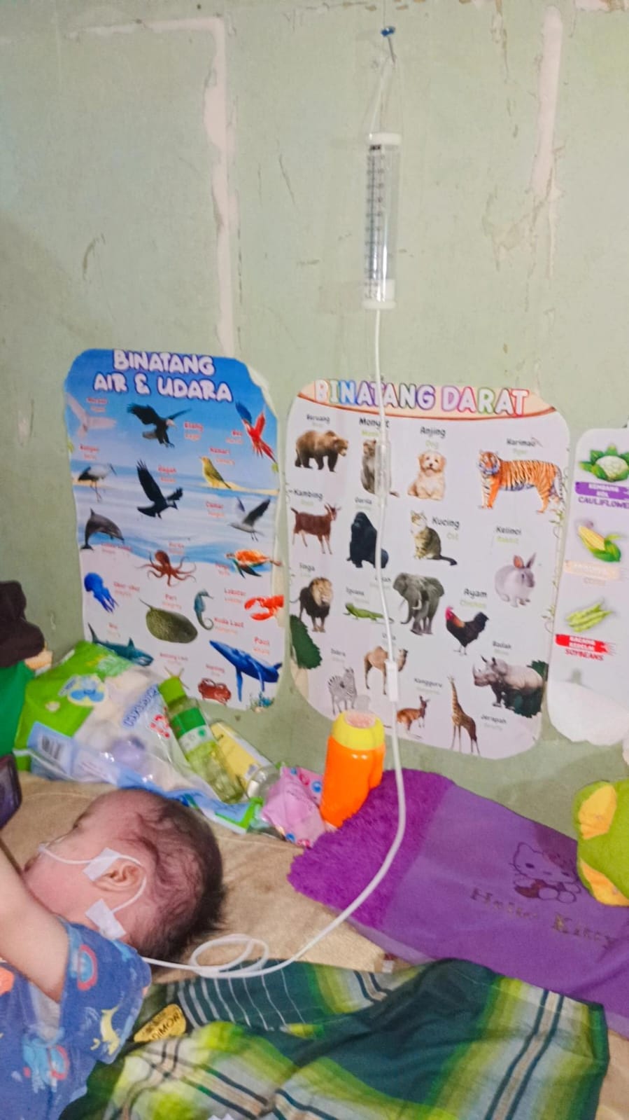 Ayahnya yang seorang pekerja serabutan sulit untuk bisa memenuhi kebutuhan pengobatan anak kami ini.