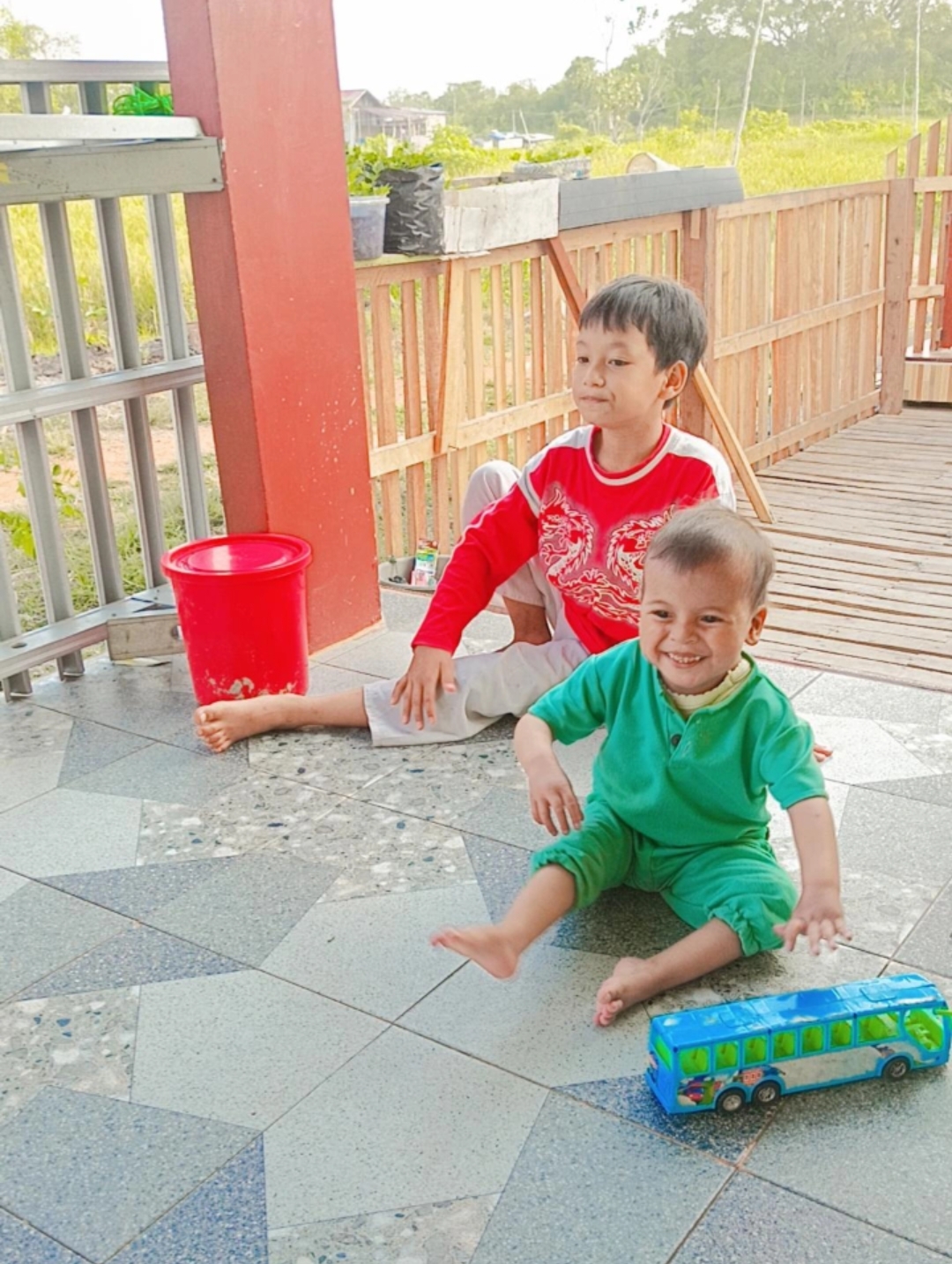 Ali masih mengejar keterlambatan tumbuh kembangnya seperti duduk, berdiri, berjalan serta bicara.