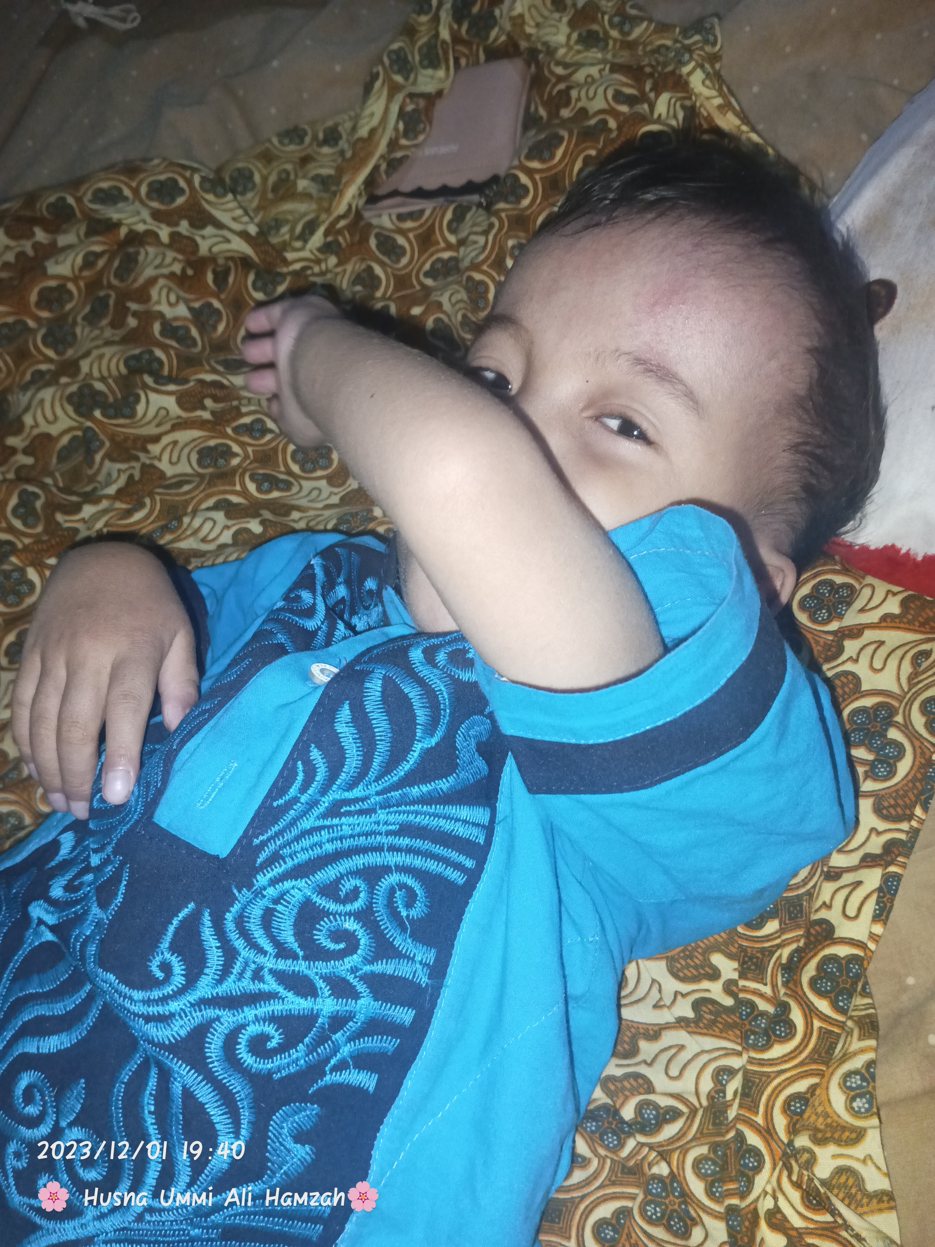 Kami mau mengabarkan kondisi Ali. Alhamdulillah kondisinya masih tetap sama, kadang tubuhnya suka membiru, terlebih ia alergi cuaca tiap hari.