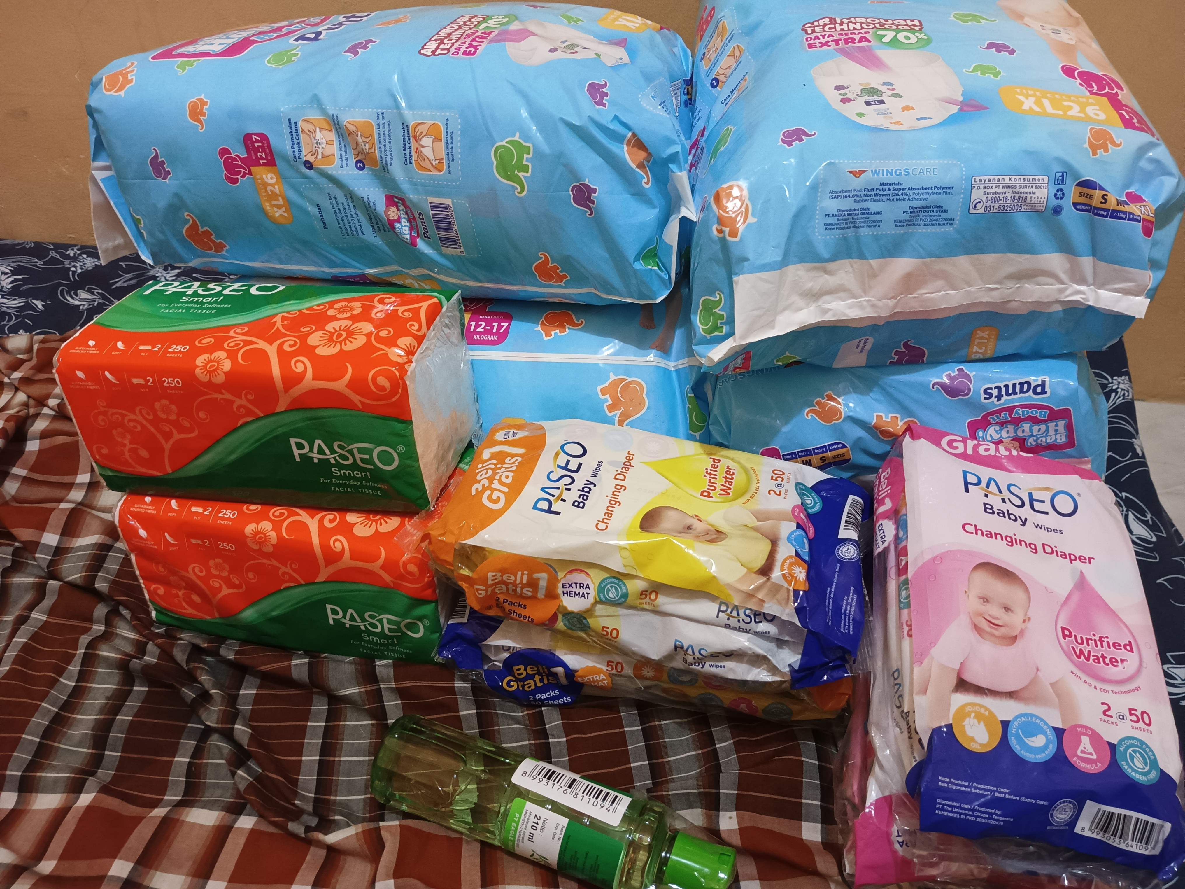 Dana dari TemanBaik kami gunakan untuk membeli susu, popok, tisu basah & kering, biaya transportasi, biaya makan dan kebutuhan lainnya.