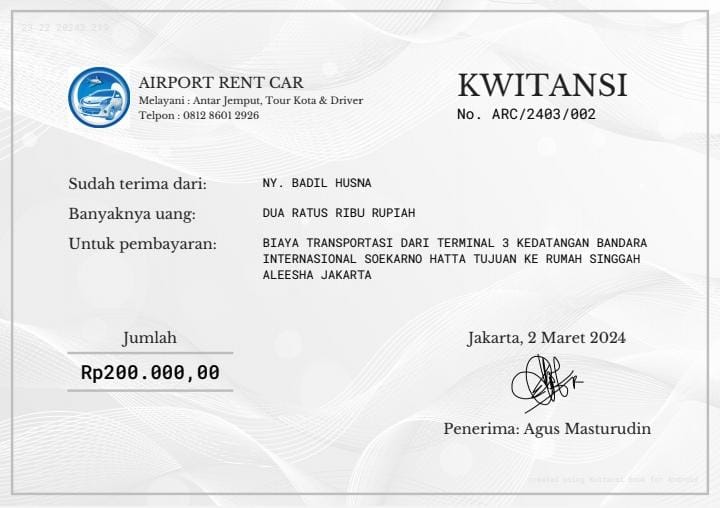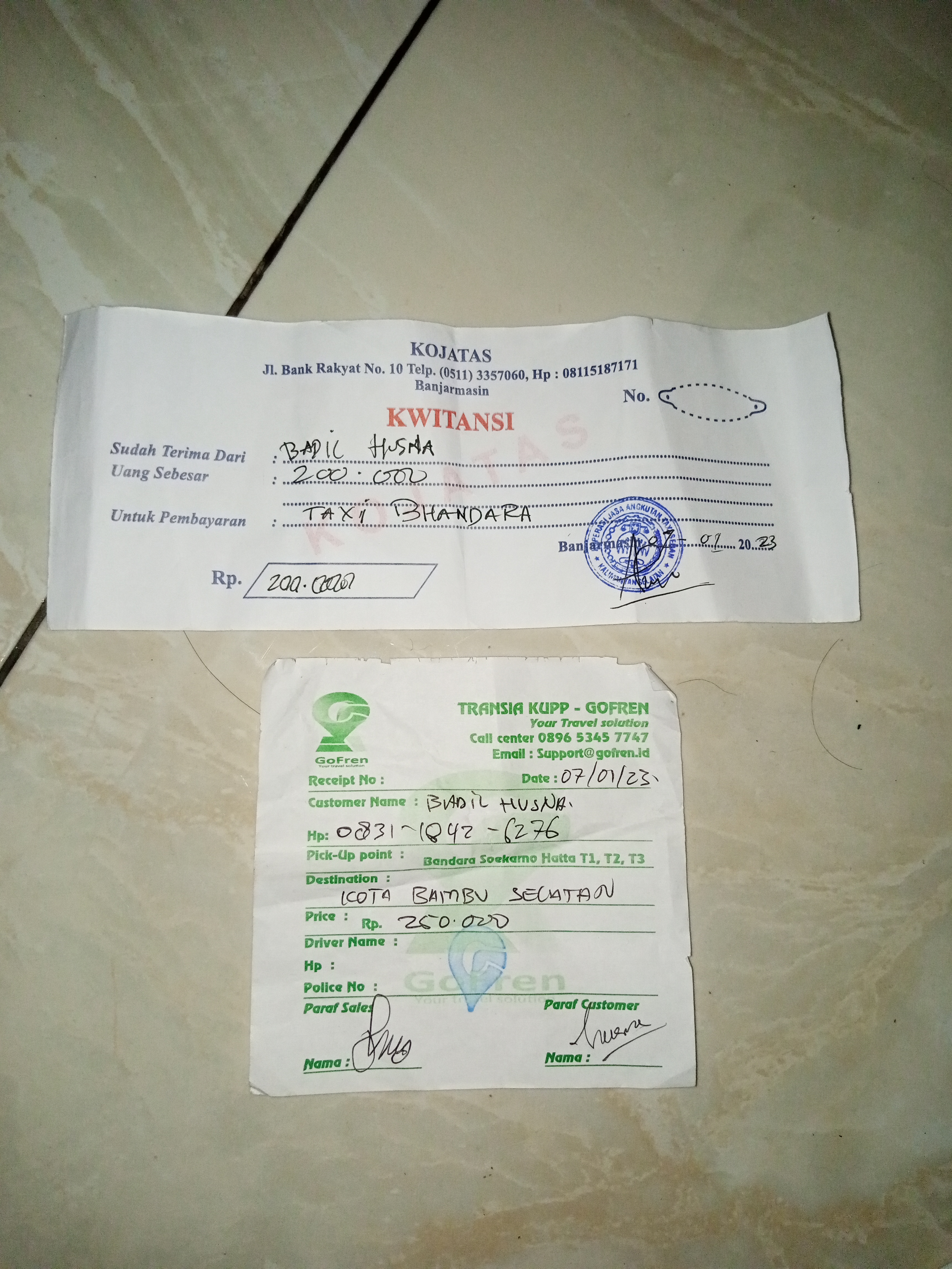 2. Taxi Bandara dari domisili ke airport Banjar Saymsudinoor Rp200.000