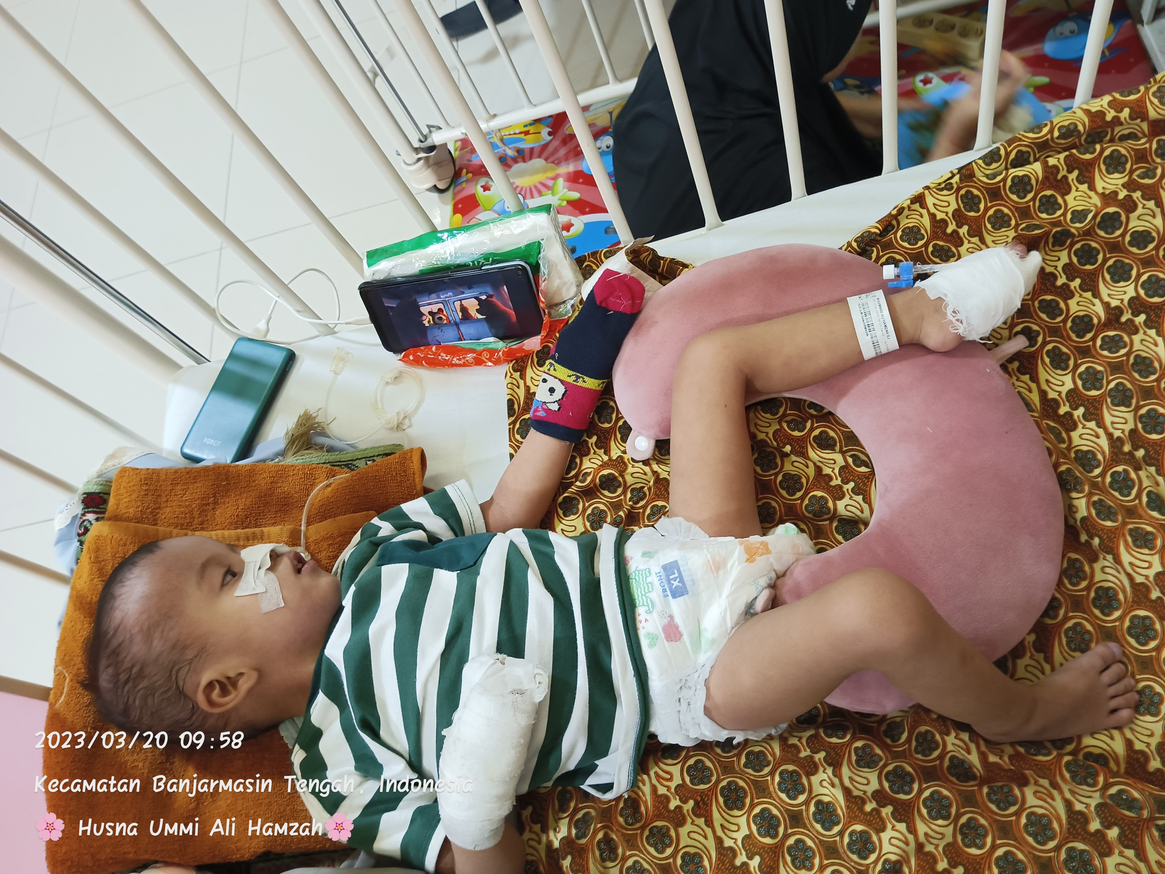Sampai hari ini anak kami harus menjalani pengobatan rutin, minum obat dari dokter atau minum obat herbal. Sebenarnya anak kami disarankan untuk operasi lagi namun kami masih terkendala biaya untuk bisa bolak-balik ke rumah sakit. Belum lagi banyak vitamin, susu khusus, dan kebutuhan lainnya yang perlu dipenuhi.