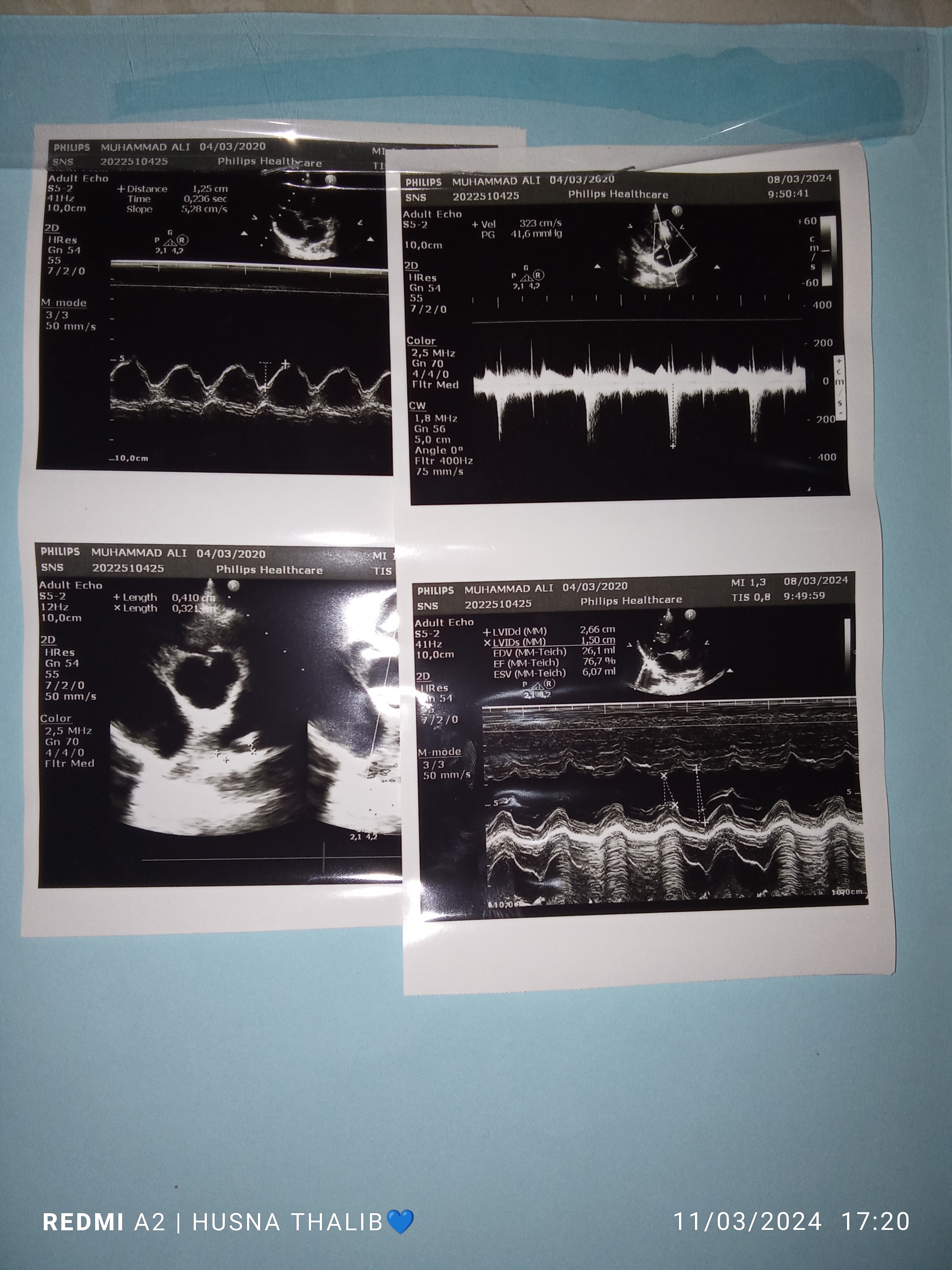 Kondisi Ali masih sering batuk dan pilek, tapi tetap rutin minum obat racikan dari Dr. Jantung dan obat pengencer darah untuk alat yg terpasang di jantungnya saat operasi pertama di tahun 2022 lalu.