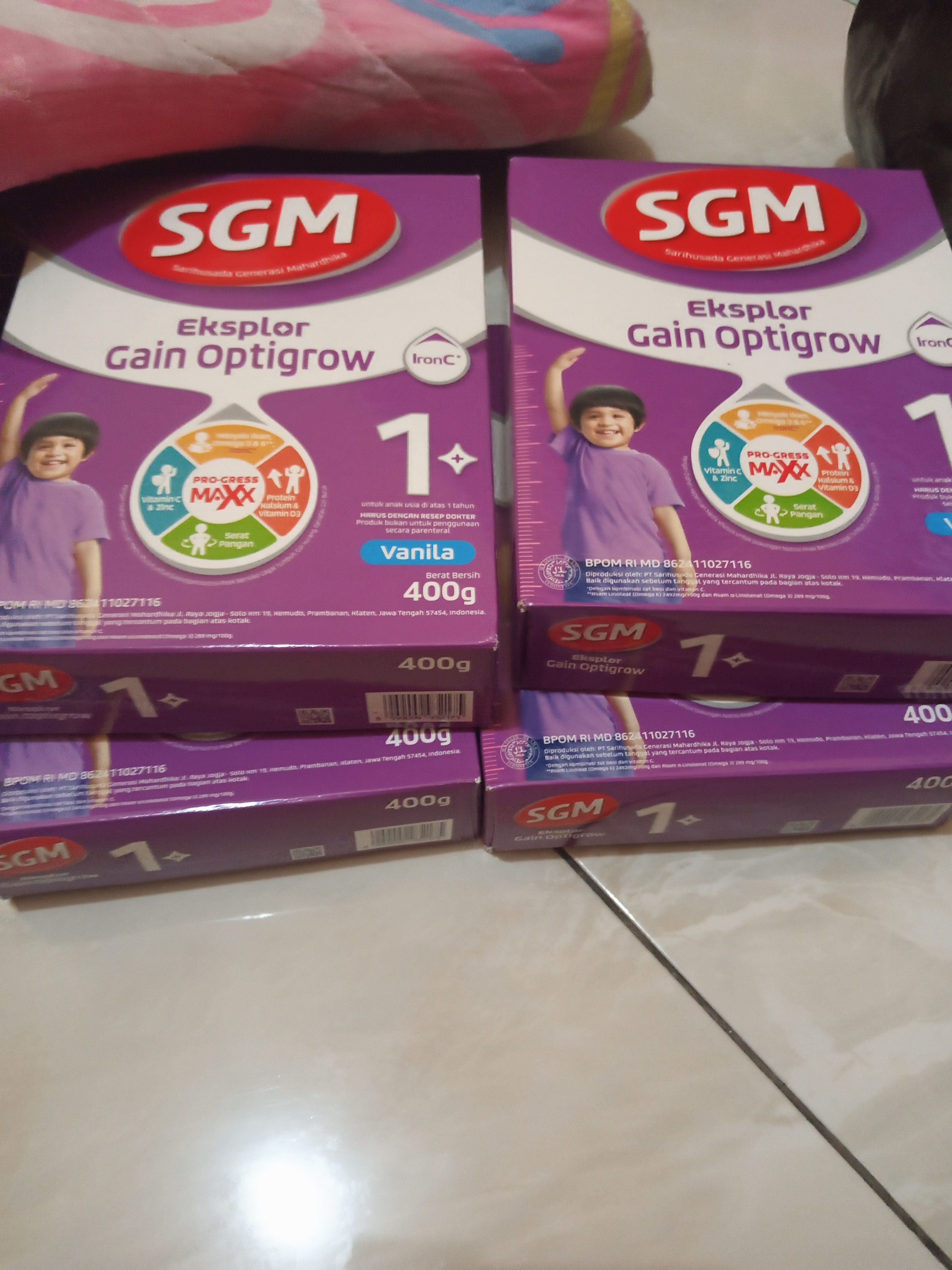 5. Susu SGM merah 1+ 900 gram Rp100.000 x 4 box = Rp400.000