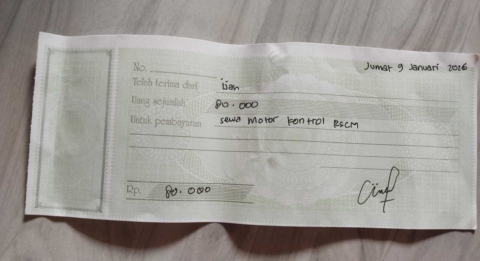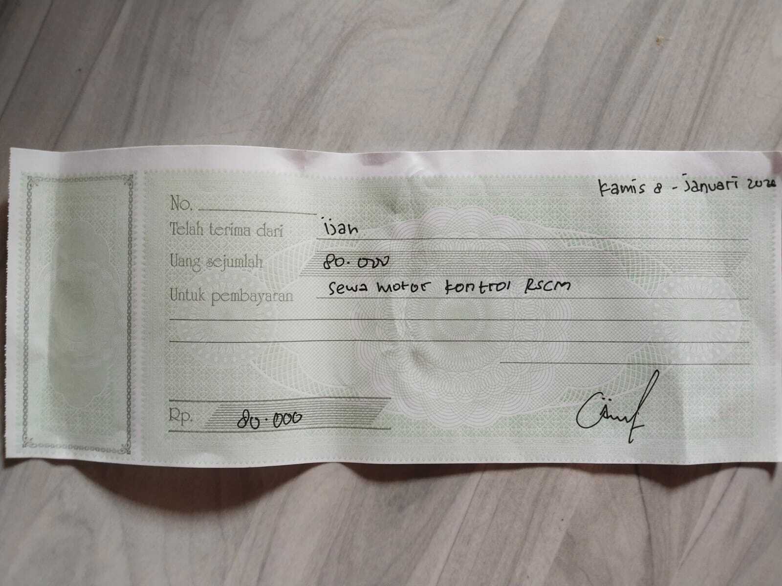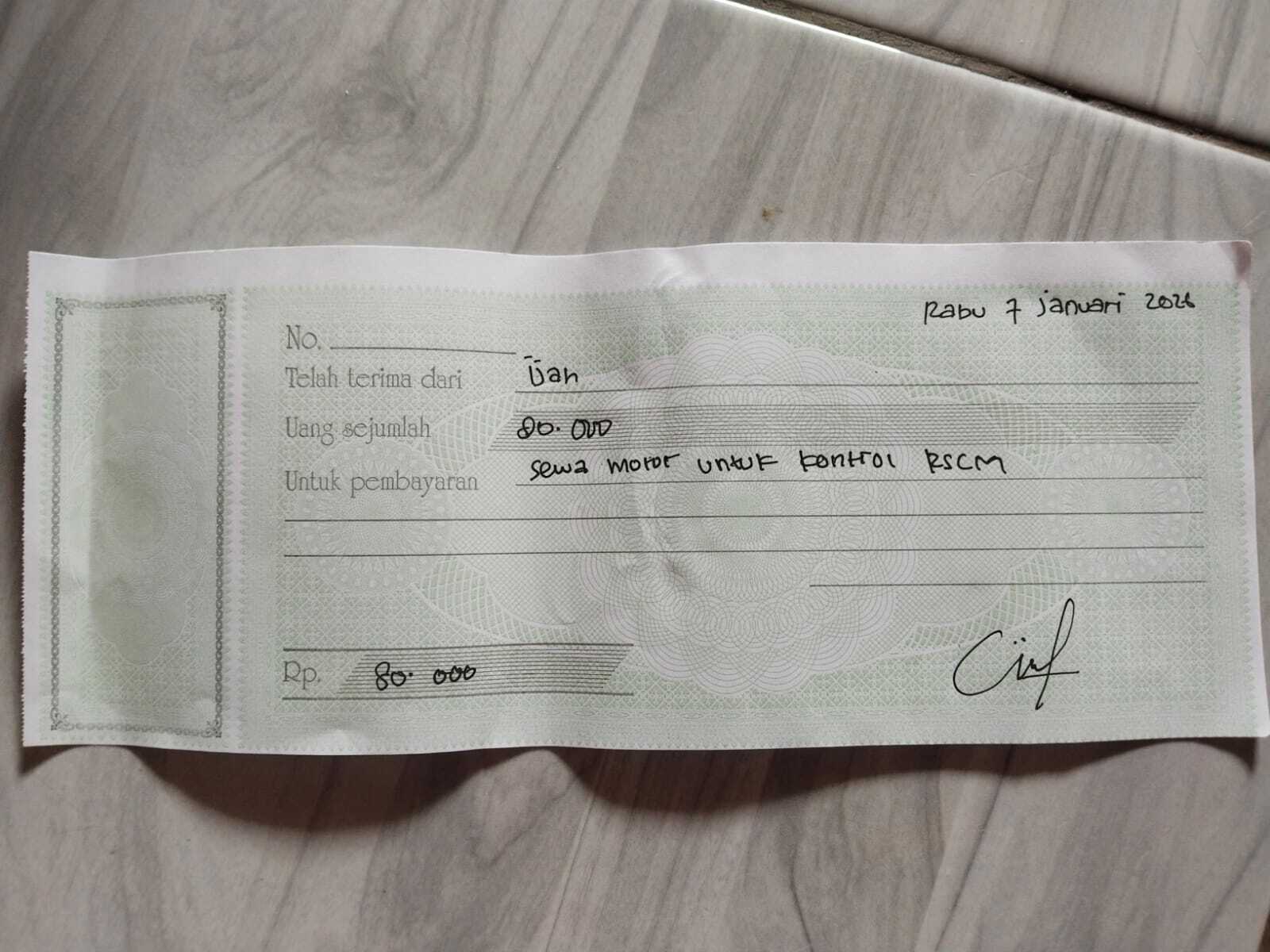 BBM PP kontrol RSCM Rp45.000 × 10 kali = Rp450.000