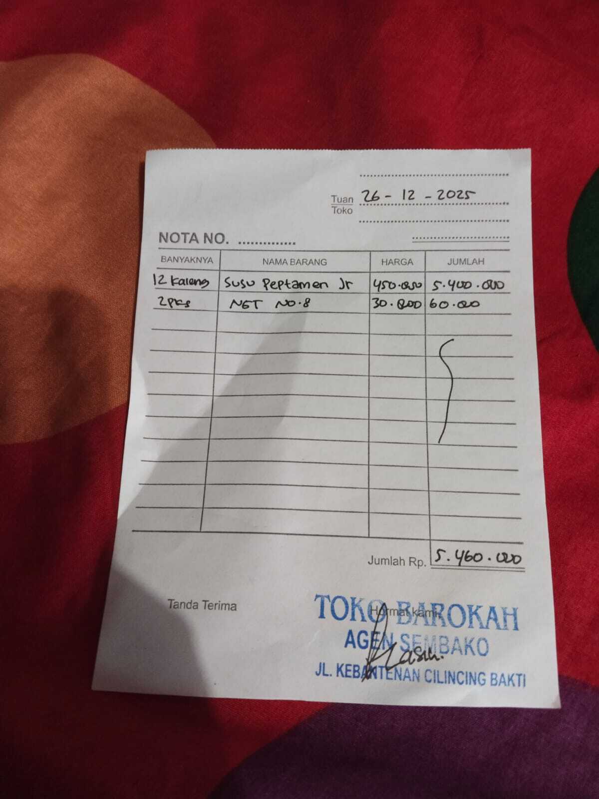Susu 7 dus @ Rp110.000 = Rp770.000