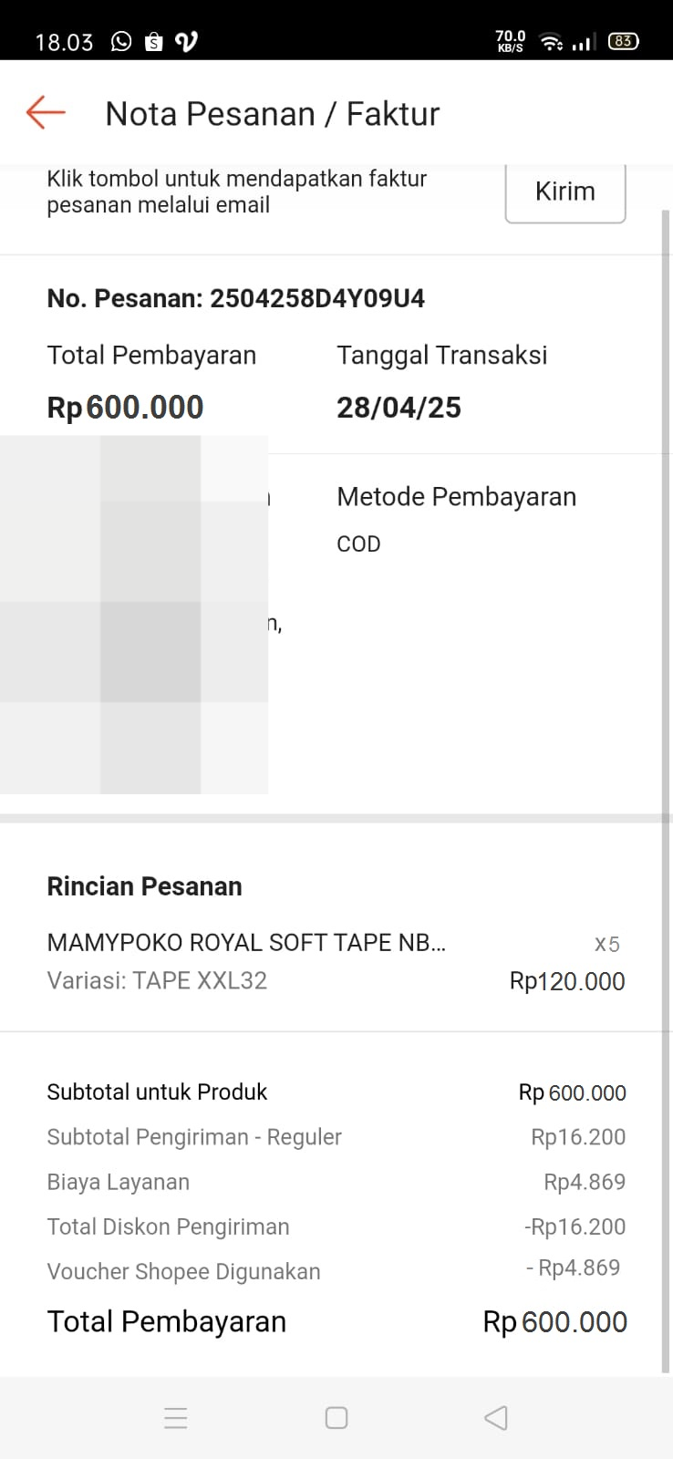 Pempes Merries xxl 6 ball x 90.000= Rp. 540.000 NGT 5 x 40.000= Rp. 200.000 Vitamin prove'D = Rp. 200.0002025-02-25 09:14:06