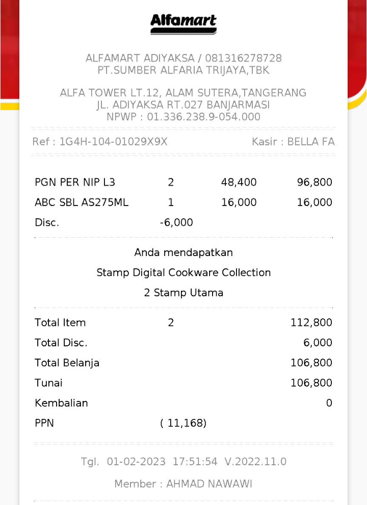 - Untuk membeli susu dancow 1+ vanilla 7 kotak × 112.000 = 784.000 - Untuk membeli popok merries 2 L44 x 89.000 = 178.000