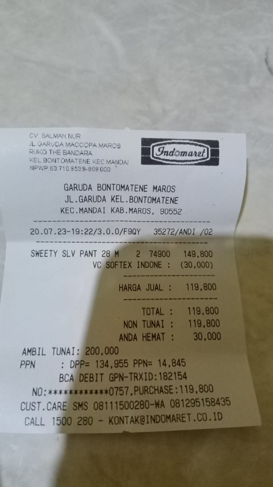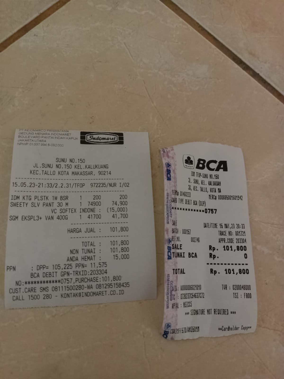 Dana digunakan untuk 1. Susu SGM 3+ Vanila ukuran 400 gram Rp42.500 2. Popok celana Sweety L30 Rp60.000.2023-05-15 15:01:19