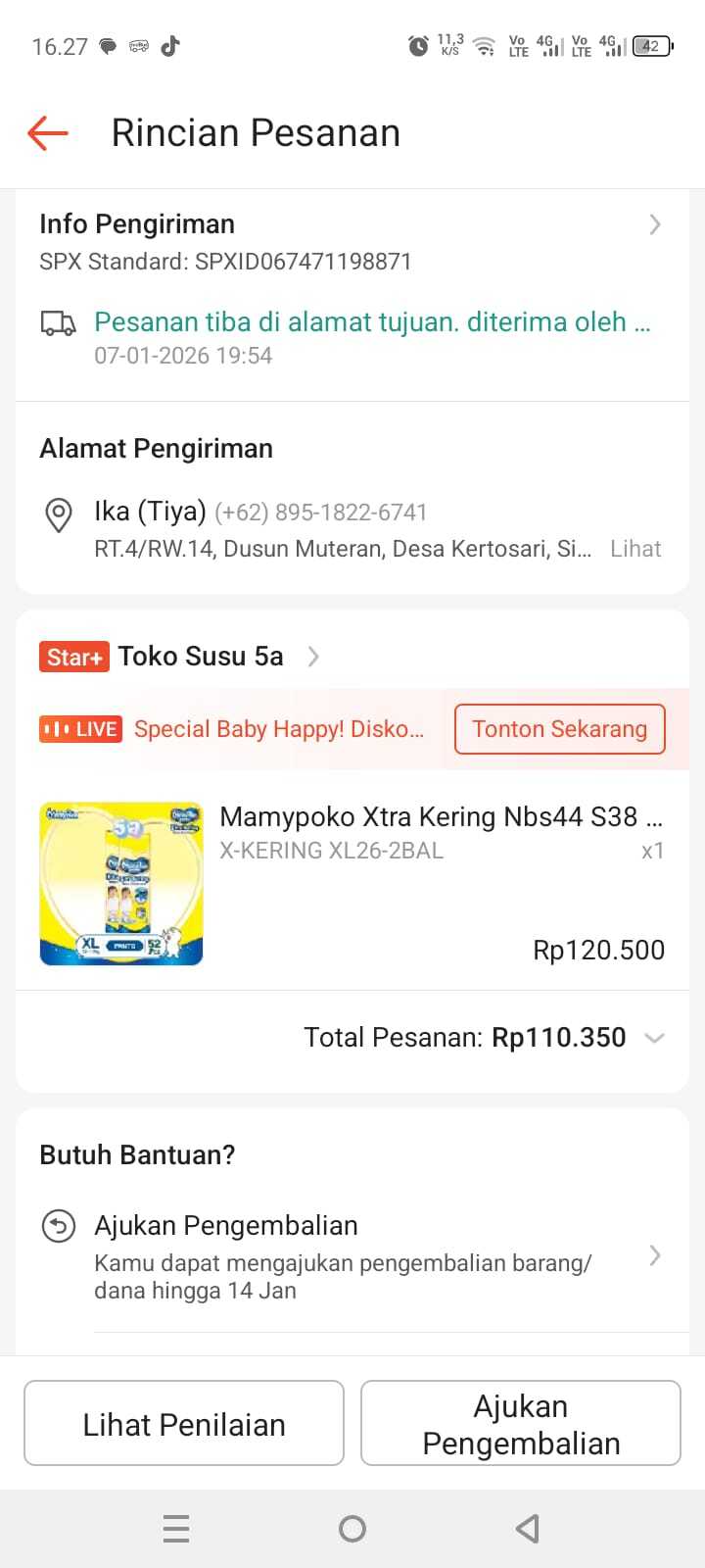 Dana digunakan untuk pembelian pampers dan telur.2023-11-22 18:50:41