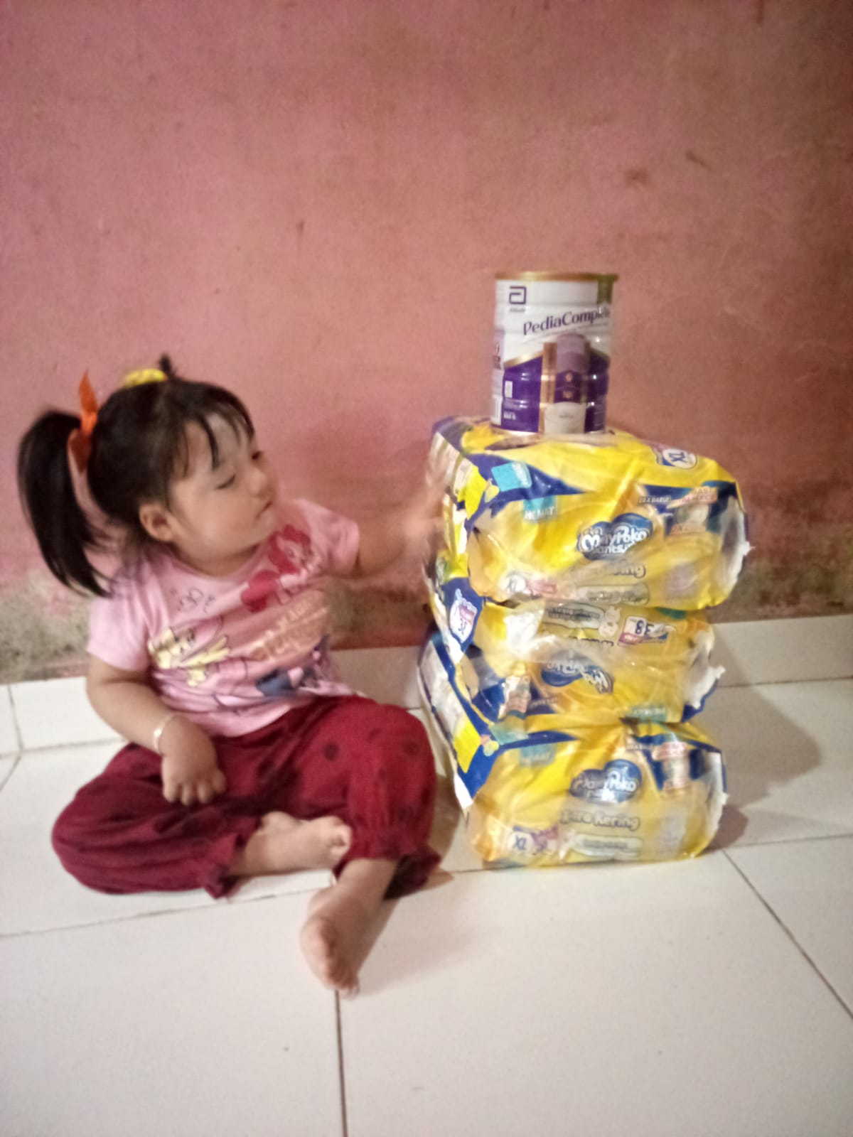 Dana bantuan dari #TemanBaik sudah kami gunakan untuk membeli susu dan pampers April.