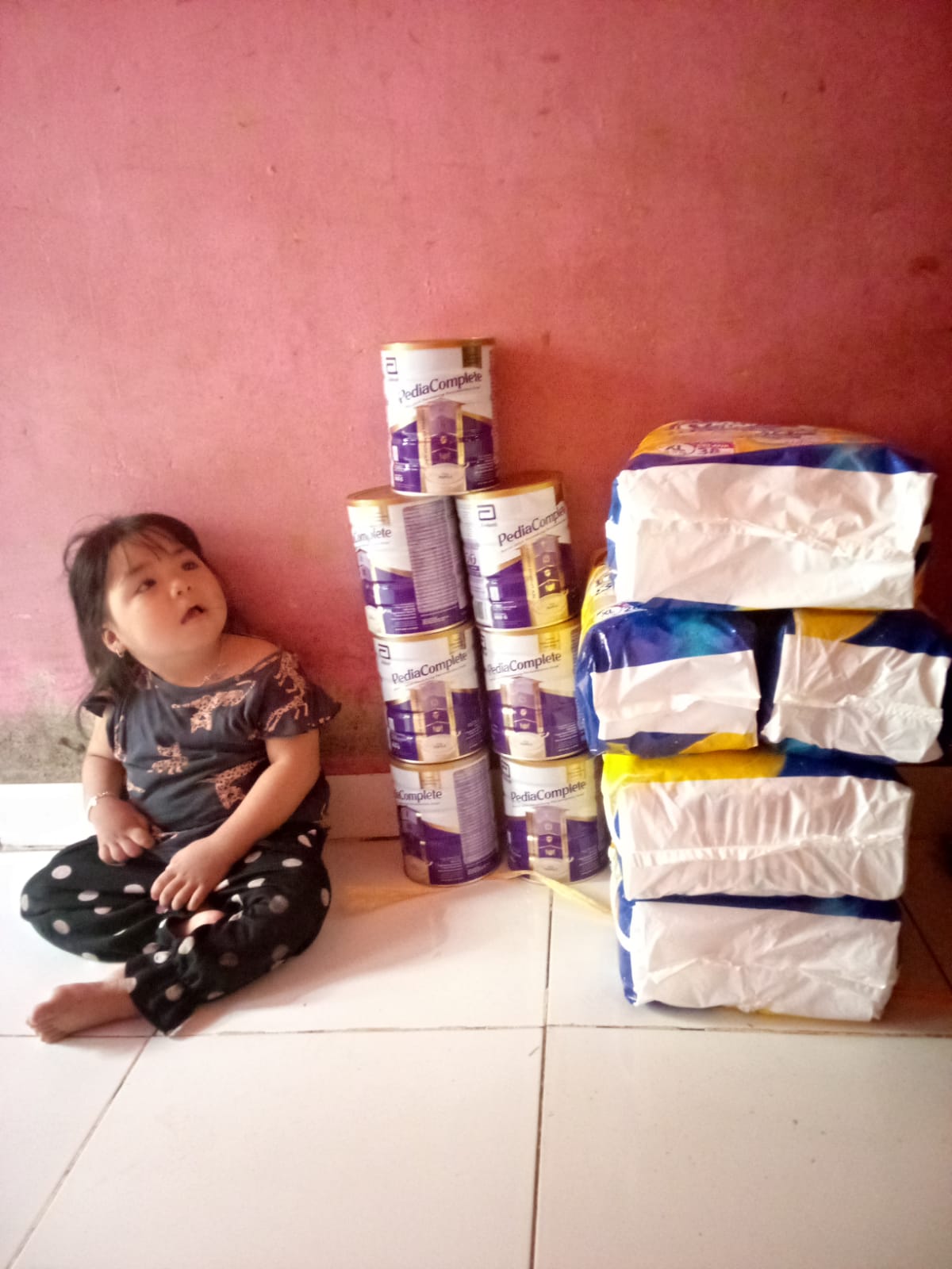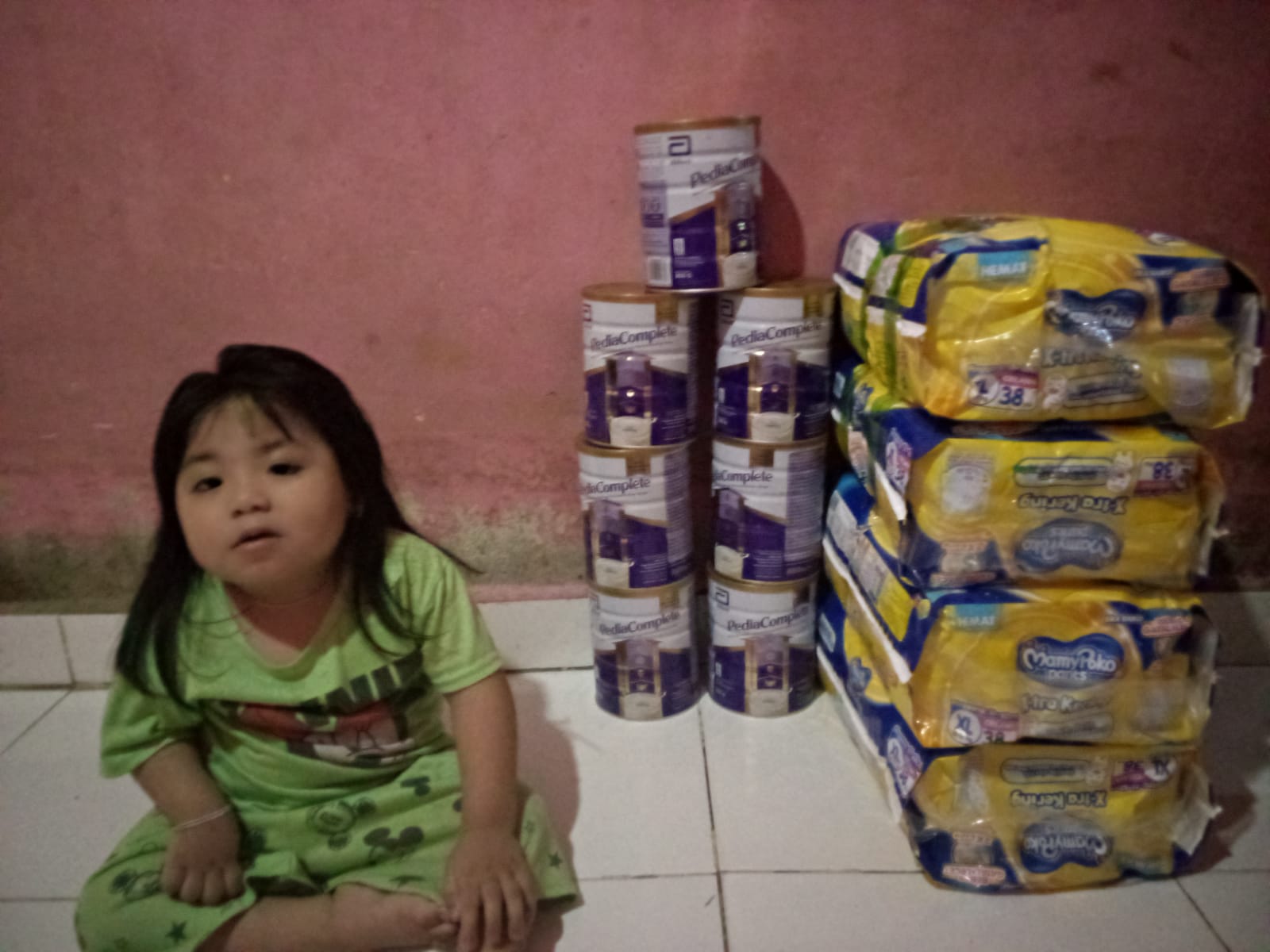 Bantuan dari #TemanBaik telah kami gunakan untuk memenuhi kebutuhan April Yazmin. Dana digunakan untuk uang makan selama 2 minggu di Jakarta.