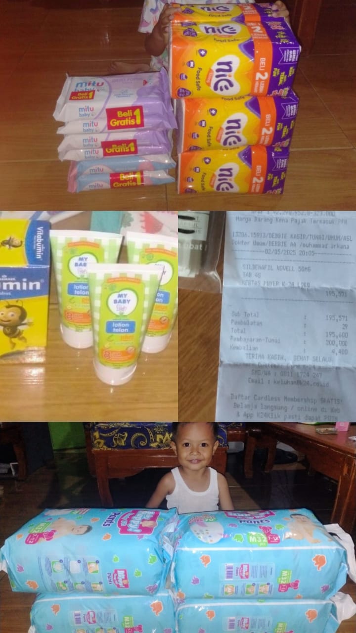 Dana bantuan yang diterima telah kami gunakan untuk membeli obat-obatan yang tidak ditanggung BPJS, serta kebutuhan harian Arkana seperti popok, salep luka, dan perlengkapan lainnya.