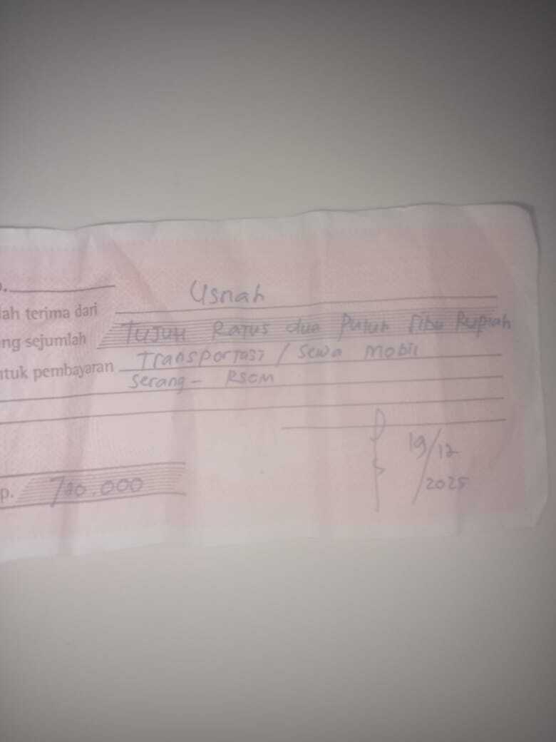 Dana digunakan untuk 1. Biaya transportasi online PP Serang ke RS Rp720.000 2. Biaya konsumsi kontrol Ro150.0002025-10-24 16:39:14