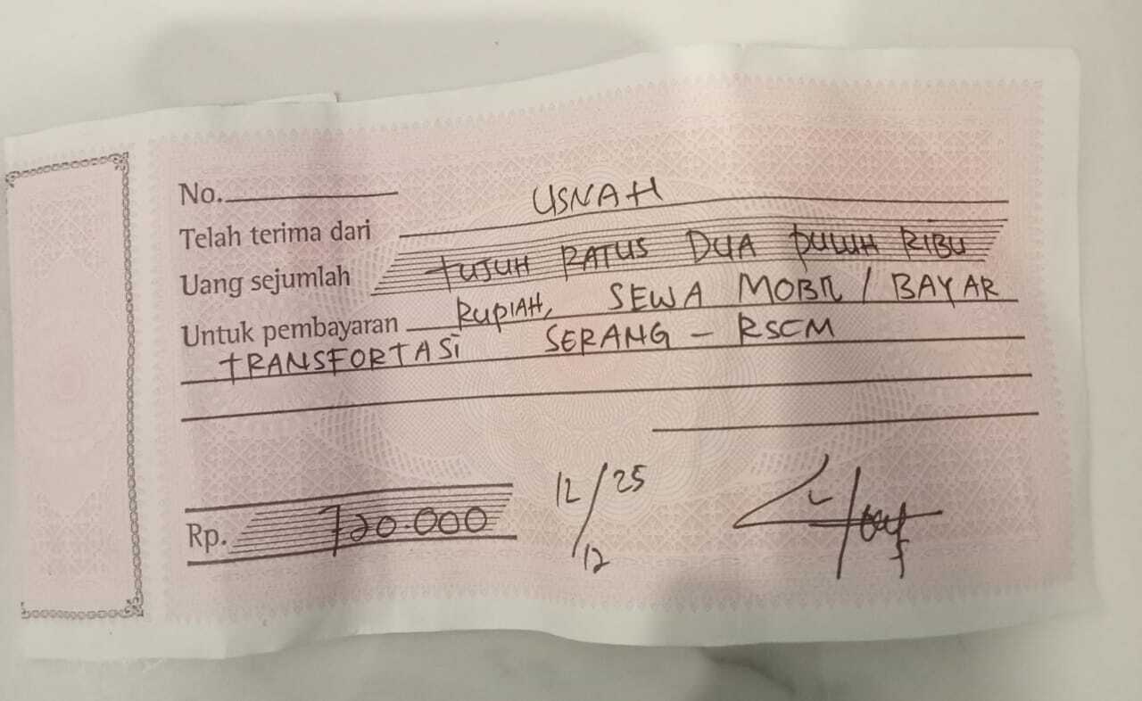 Dana digunakan untuk Transportasi sewa mobil kontrol ke RSCM PP Rp720.0002025-12-19 11:15:56