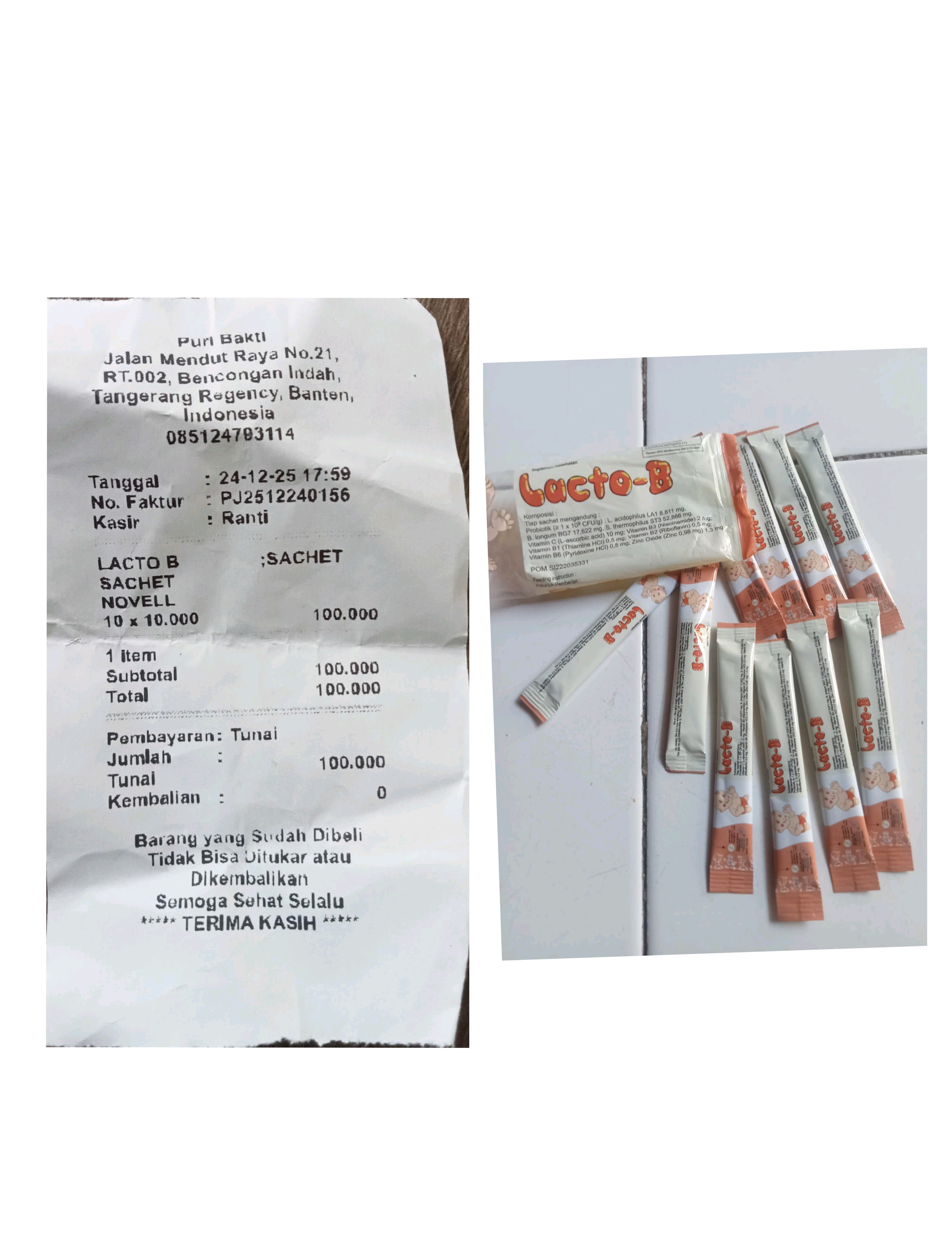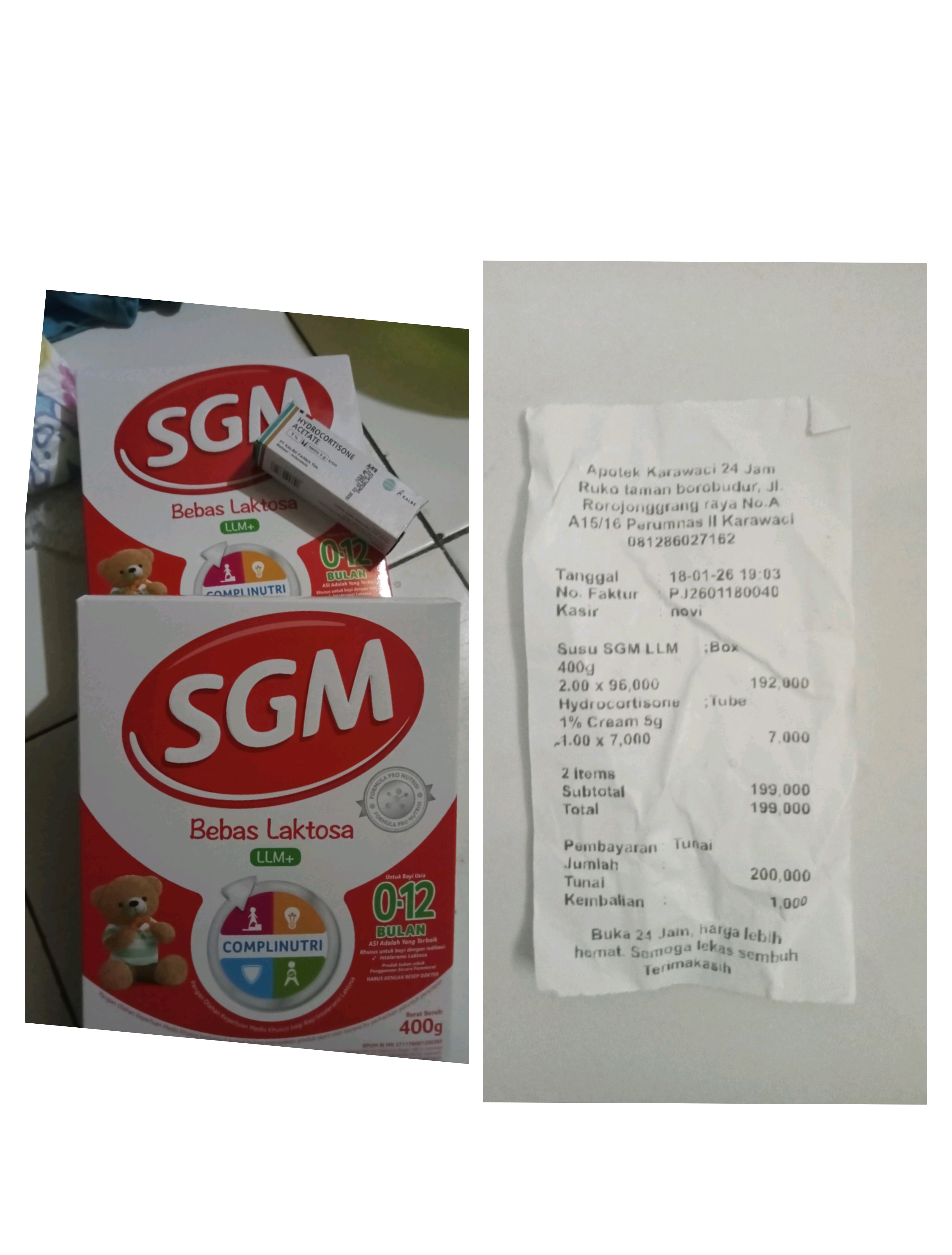 Dana digunakan untuk 1. Pampers meries Rp72.000 x 8 Rp576.000 2. Susu sgm 1+ Rp85.000 x 8= Rp680.000 3. Lacto b Rp10.000 x10 = Rp100.000 4. Reimburse susu 400grm Rp43.0002025-12-26 13:14:00