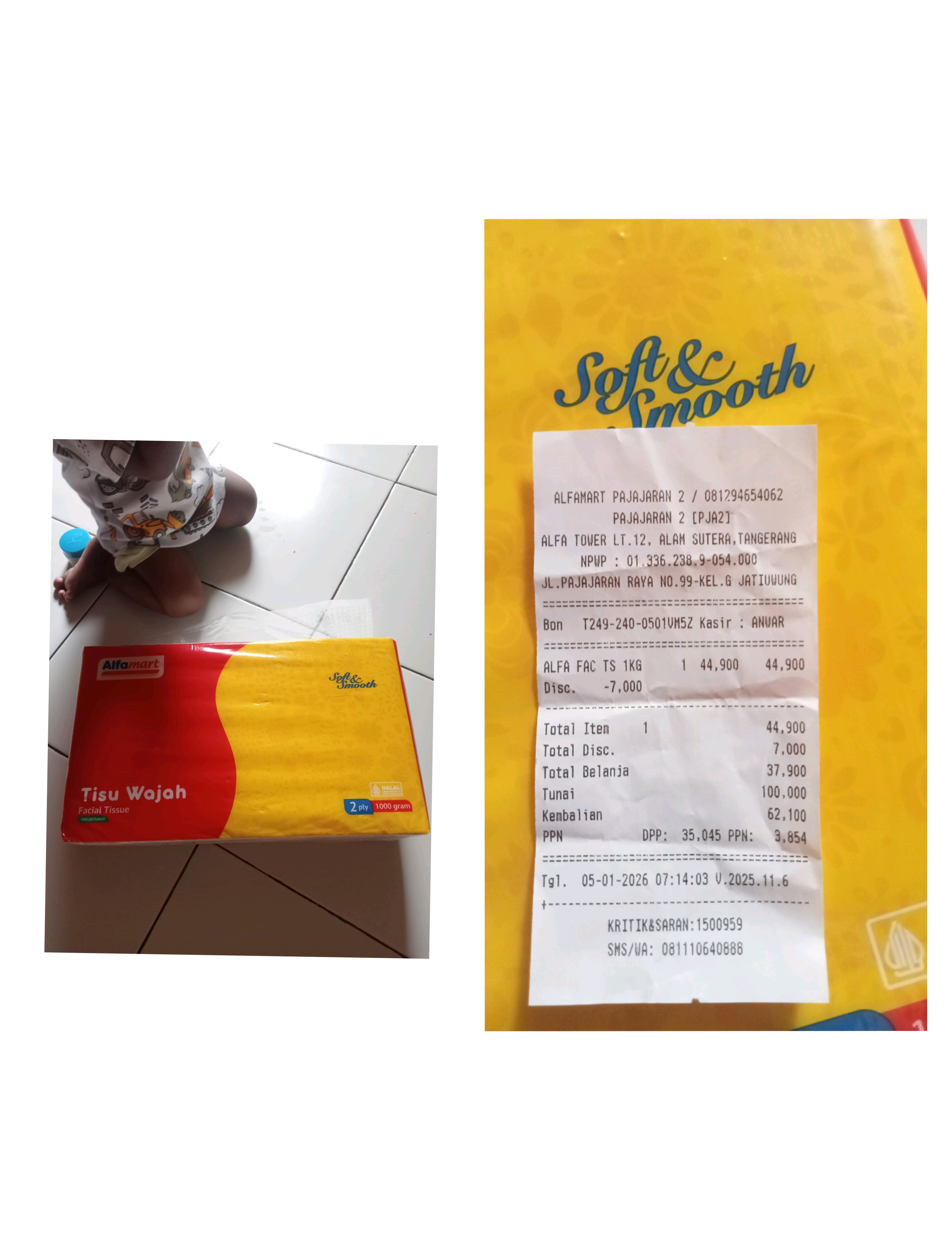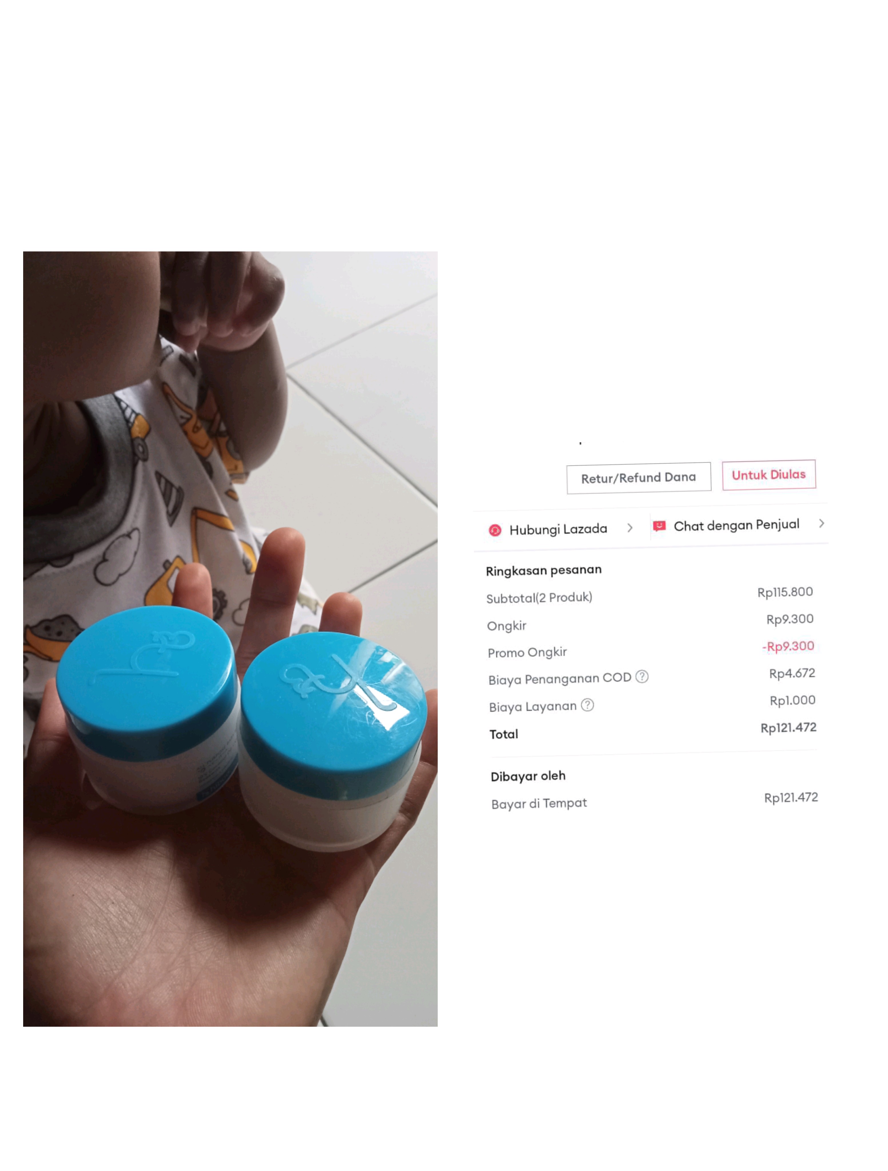 Dana digunakan untuk 1. Tisue basah 6pc Rp90.000 2. Tisue kering 2pcs Rp90.000 3. Bubur bayi promina 2pc Rp50.000 4. Minyak telon 3botol Rp135.000 5. Pampers Rp75.000 x 8 = Rp600.000 6. Reimburse sewa mobil pulang rawat inap Rp230.0002026-01-27 11:19:11