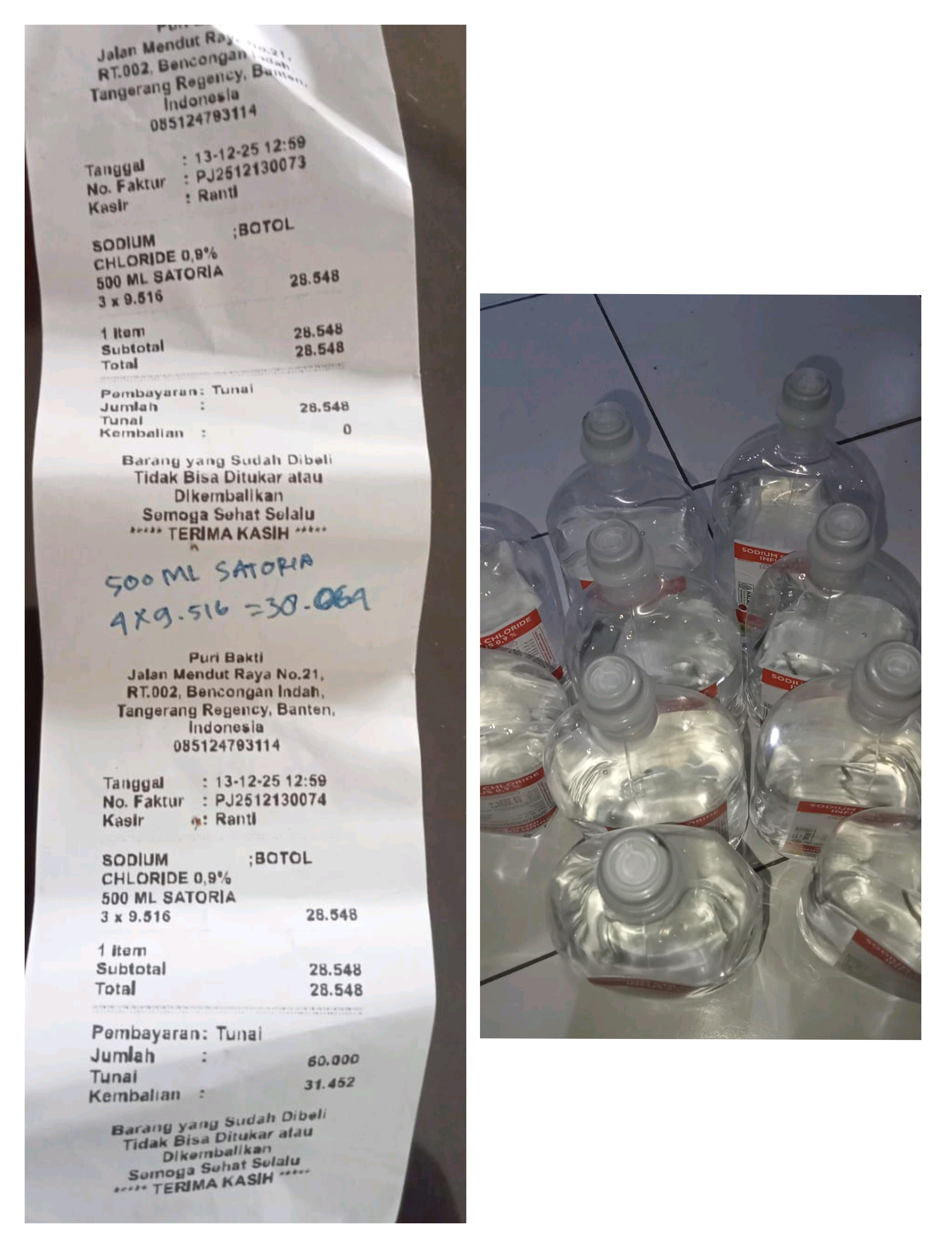 Dana digunakan untuk 1. Transportasi sewa mobil / online kontrol PP Serang RSCM RP720.000 2. NaCL Rp10.000 x 10 = Rp100.000 3. Jell untuk businasi Rp65.0002025-12-15 09:05:38
