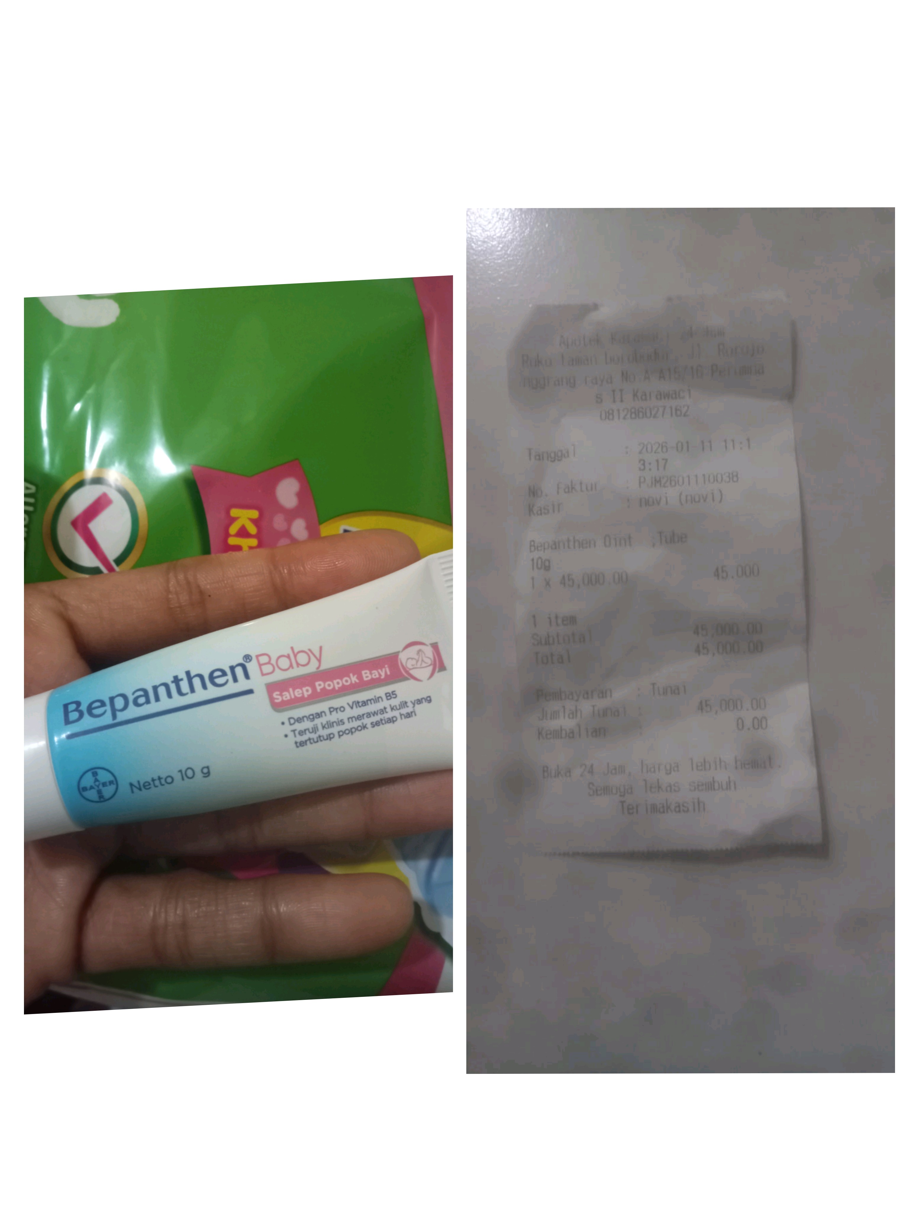 Dana digunakan untuk 1. Salep ruam popok hibbo Rp65.000 x 2 = Rp130.000 2. Minyak telon Rp45.000 x 2 = Rp95.000 3. Tisue kering Rp45.000 x 3 = Rp135.000 5. Tisue basah Rp15.000 x 5 = Rp75.000 6. Biskuit sun Rp12.000 x 5 = Rp48.000 7. Bubur bayi promina Rp25.000 x 5 = Rp125.0002025-12-02 10:43:48