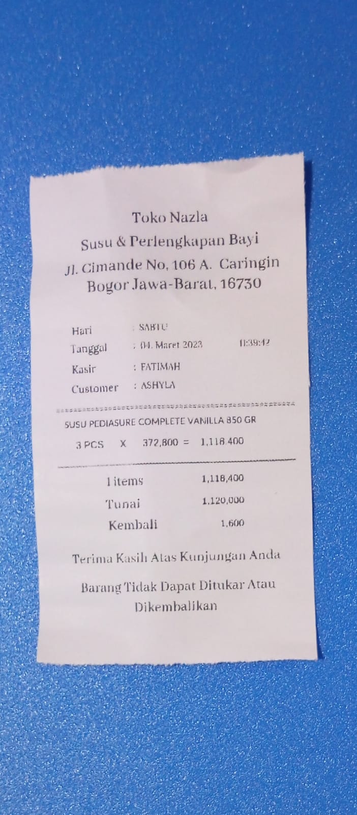 Dana digunakan untuk pembelian Susu Pediasure Complete 850 gram 372.800 x 3 kaleng= Rp1.118.400.2023-03-02 17:05:20