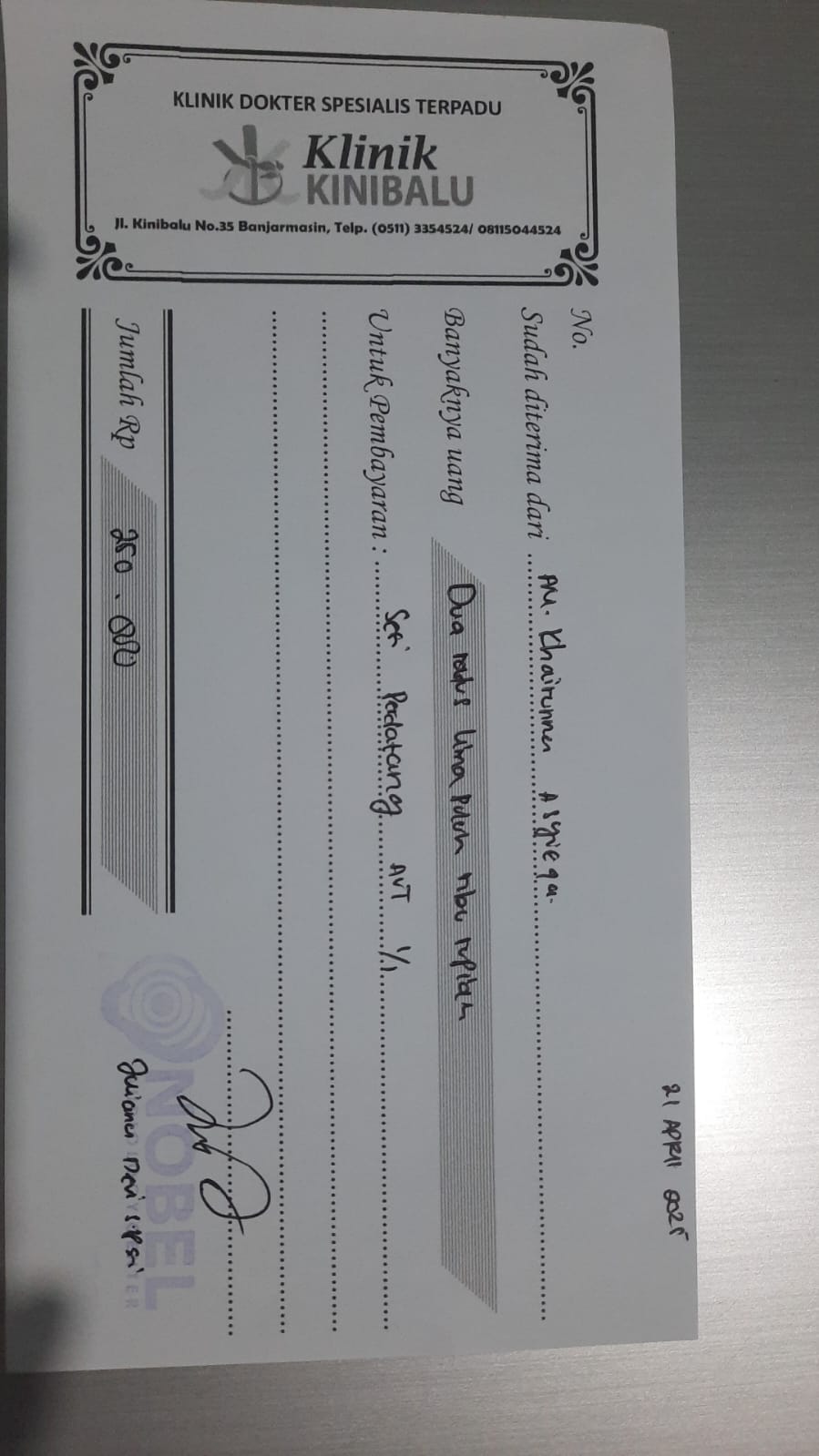 biaya terapi Avt per sesi 250.000, transport pembelian Bbm 350.000, dan biaya makan di perjalanan 3 org (orang tua dan Asyieqa) sekitar 105.0002025-04-10 16:41:04