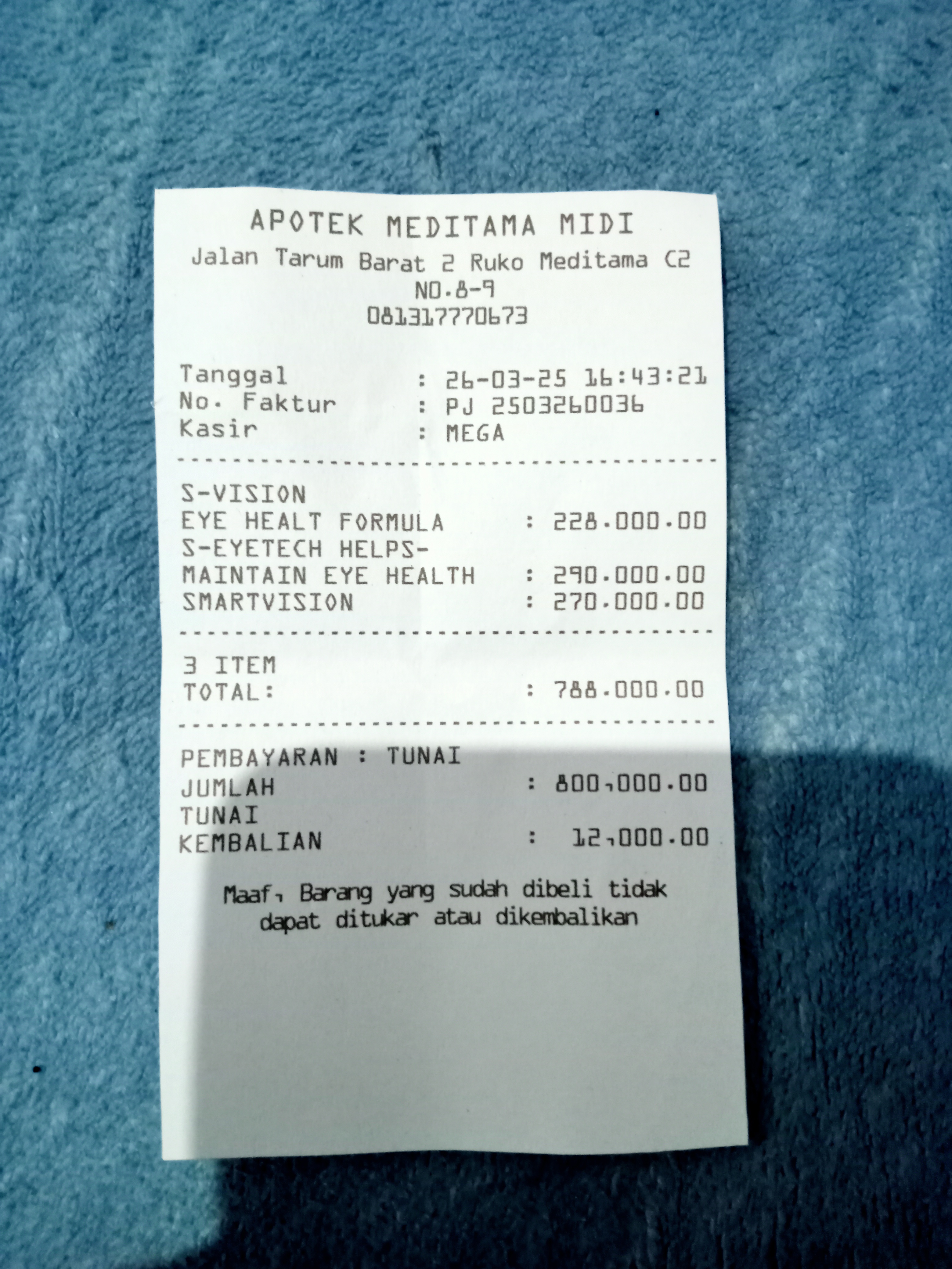 Dana digunakan untuk vitamin mata smart vision Rp350.000 x 2 pcs = Rp700.000.2025-04-25 09:45:05