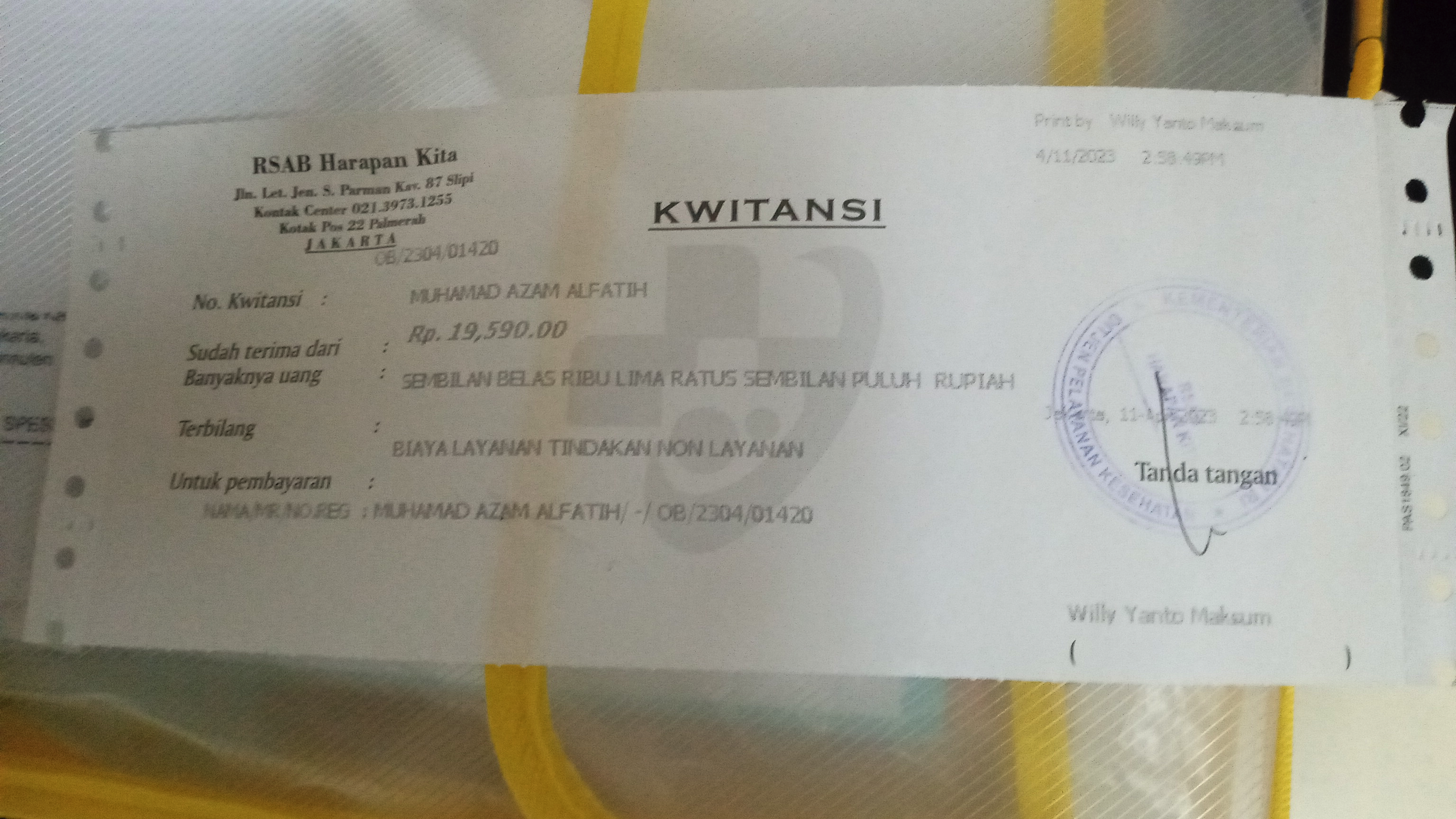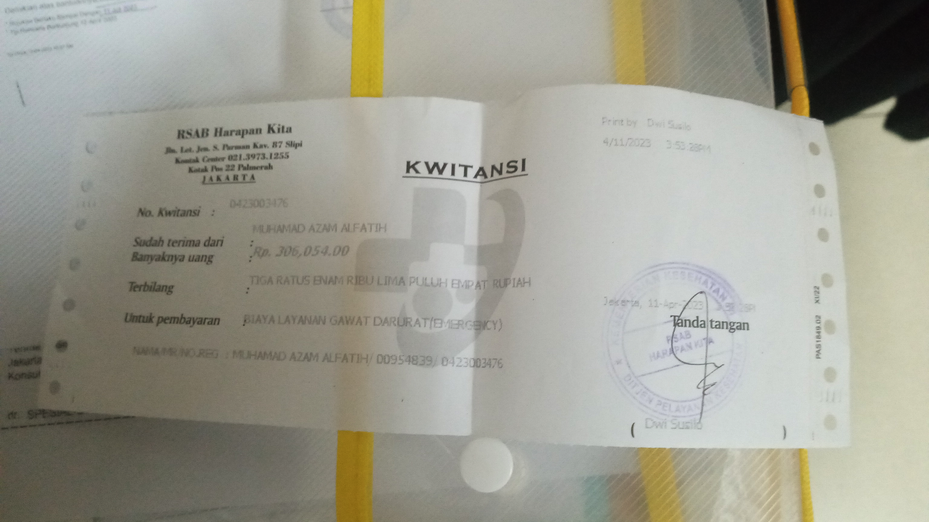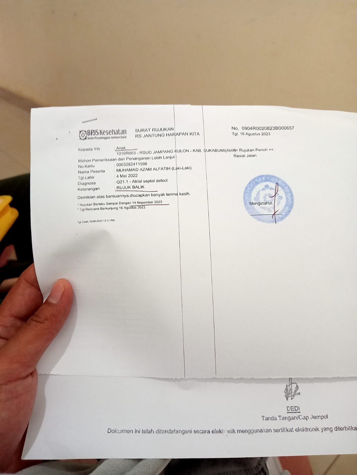 Aku orang tua Azam mau ngasih kabar keadaan anakku saat ini. Anakku sedang demam dan kemarin sempat dibawa ke IGD RS Jantung Harapan Kita. Dokter menyarankan untuk berobat ke RSAB, tapi pakai exsekutif karena untuk daftar online pakai BPJS sudah tidak ada kuotanya.