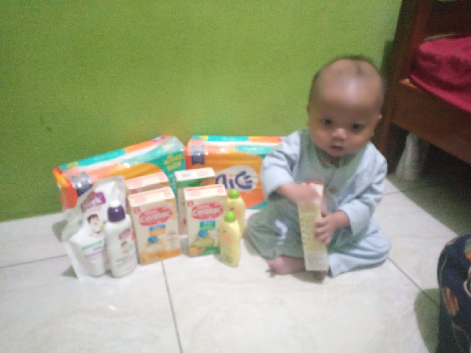 Dana donasi dari TemanBaik yang sudah terkumpul, kami gunakan dengan sangat baik untuk membeli kebutuhan Azam sehari-hari seperti susu, popok, tisu, sabun bayi dan lain sebagainya.
