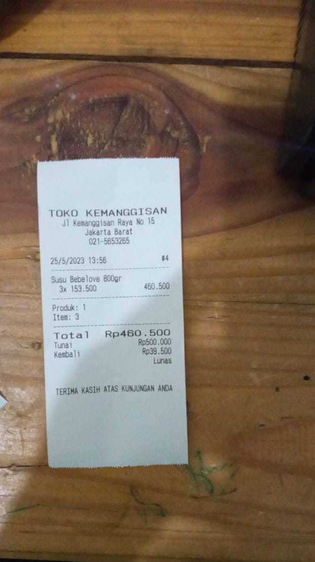 Bantuan dana dari TemanBaik sudah digunakan dengan baik untuk pembelian susu, popok, tisu, telur, puding, baju, dan kebutuhan anakku lainnya. Dana juga digunakan untuk biaya makan selama 2 minggu dan biaya sewa mobil ke Jakarta.