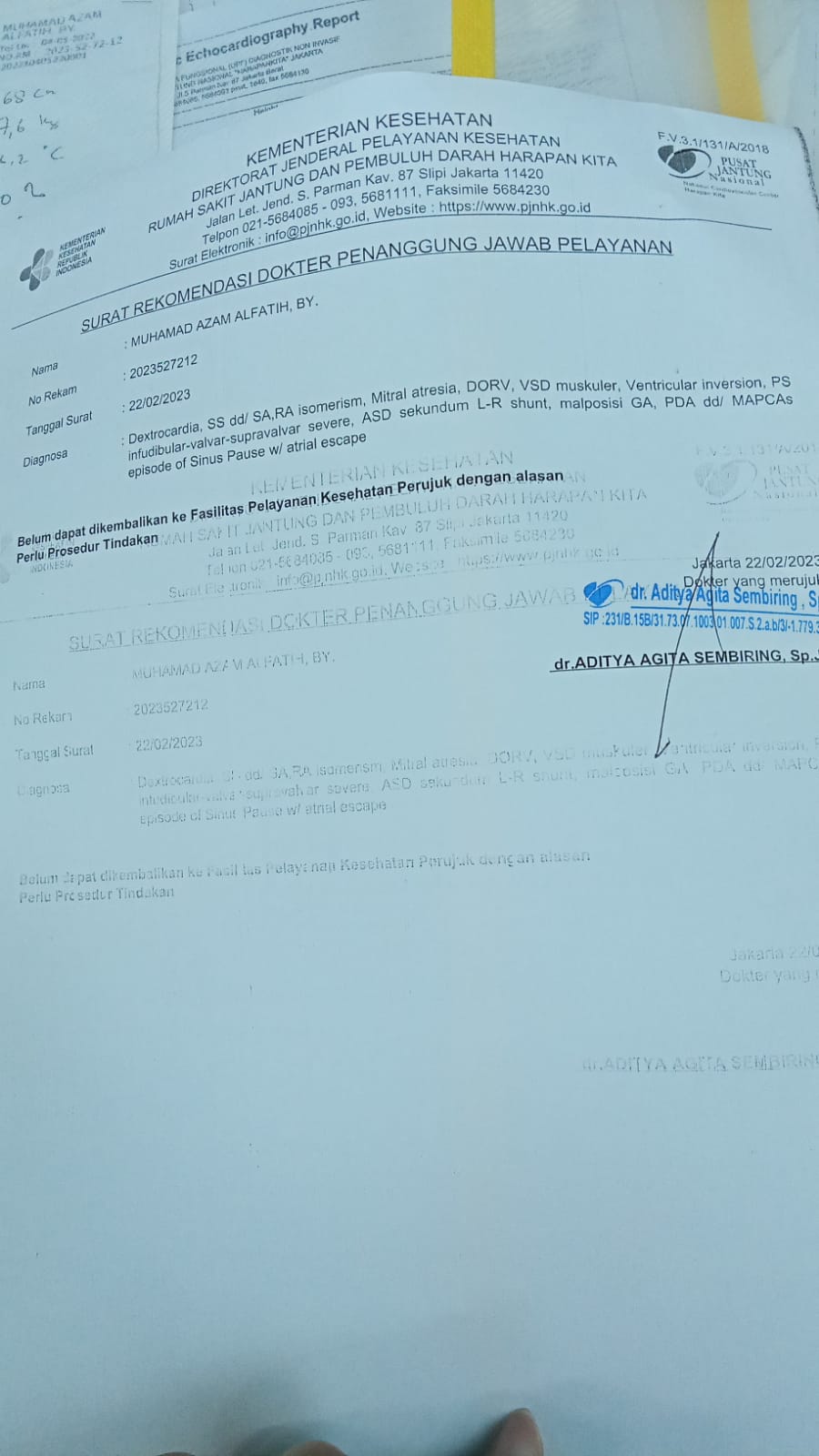 Hari ini, Azam sudah kontrol ke poli jantung pediatrik. Menurut dokter, kelainan jantung bawaan Azam sudah kompleks, sehingga perlu dilakukan tindakan operasi.