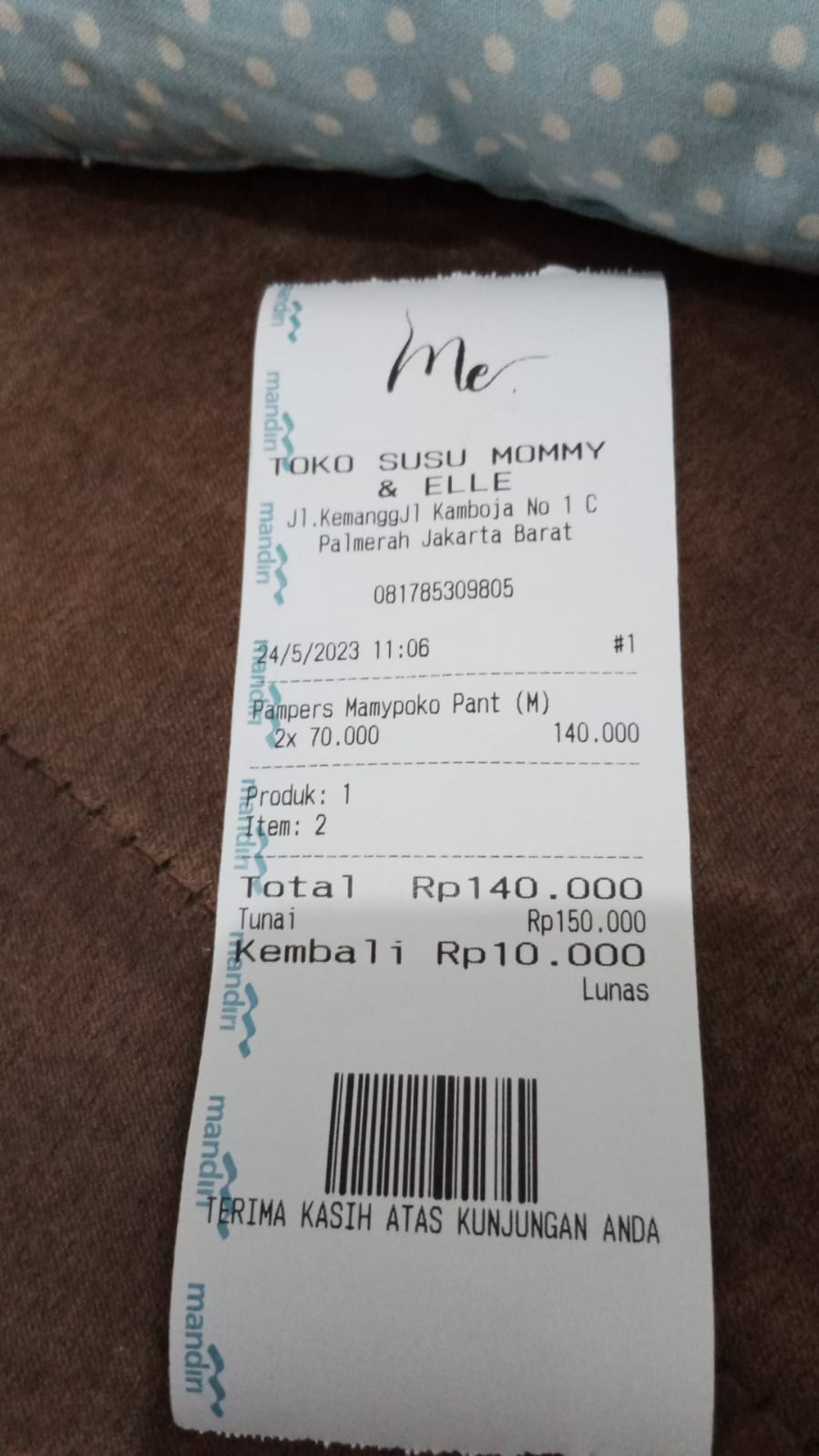 Aku juga ingin mengabarkan bahwa bantuan dana dari TemanBaik sudah digunakan dengan baik untuk pembelian tisu, susu, popok, telur, dan AC sesuai anjuran dokter.