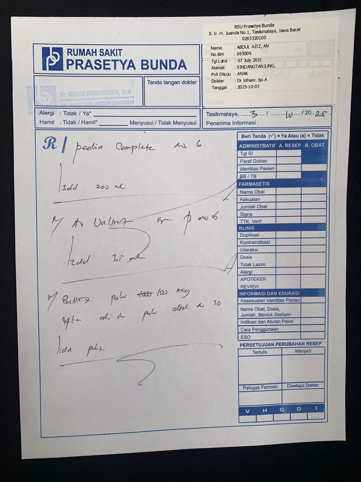 Beberapa hari terakhir, adik Aziz mengalami kejang selama dua hari berturut-turut karena obat kejang sebelumnya kurang cocok. Aziz kemudian dibawa kembali ke dokter anak untuk mendapatkan obat kejang yang baru serta obat hipotiroid.Untuk sementara waktu, dokter juga menyarankan Aziz mengkonsumsi Pedia Complete agar dapat membantu meredakan kejangnya.