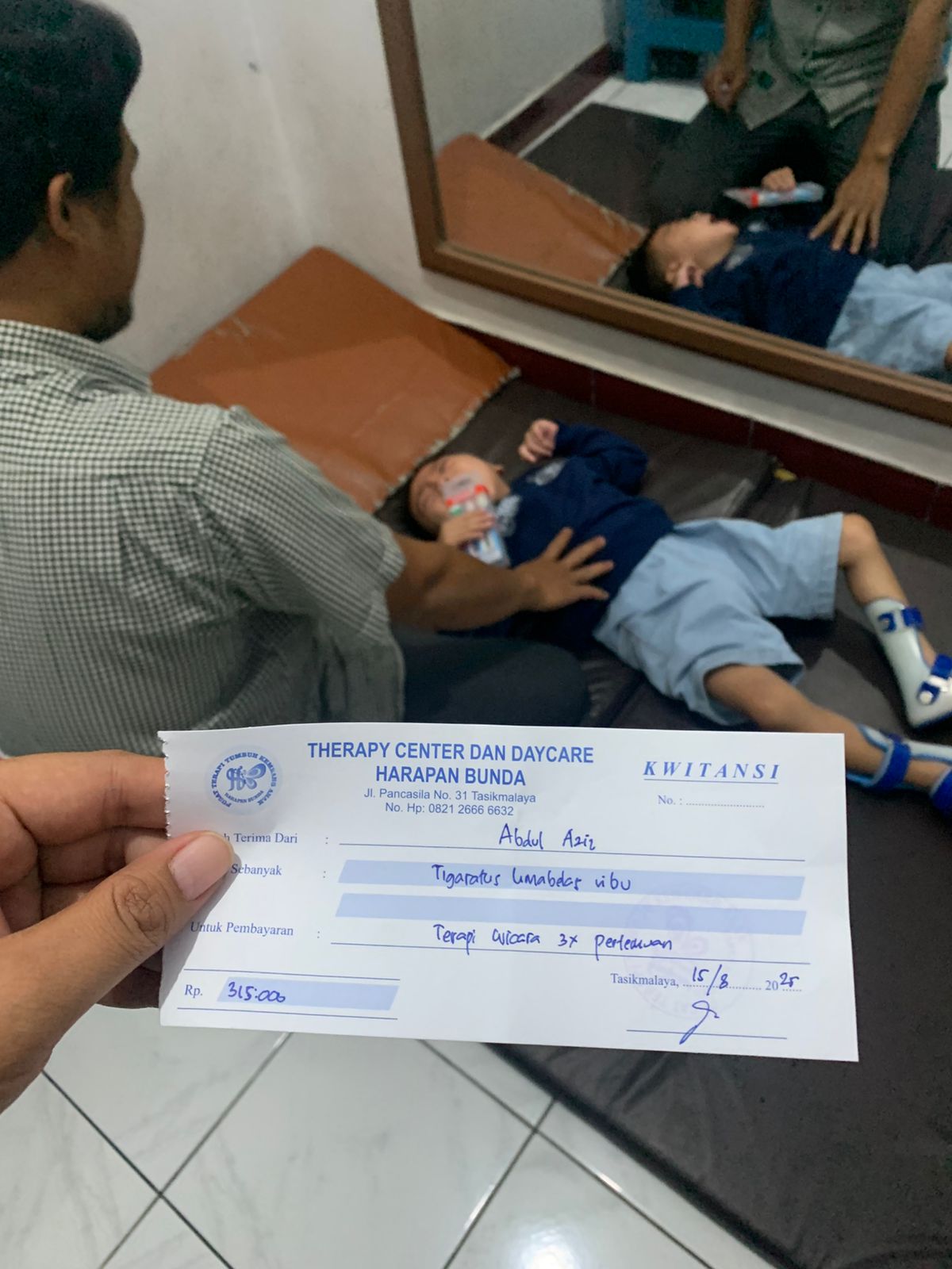 Terima kasih atas bantuannya selama ini untuk Aziz, alhamdulillah berkat bantuan dari #TemanBaik Aziz masih dapat menjalani fisioterapi sampai saat ini.