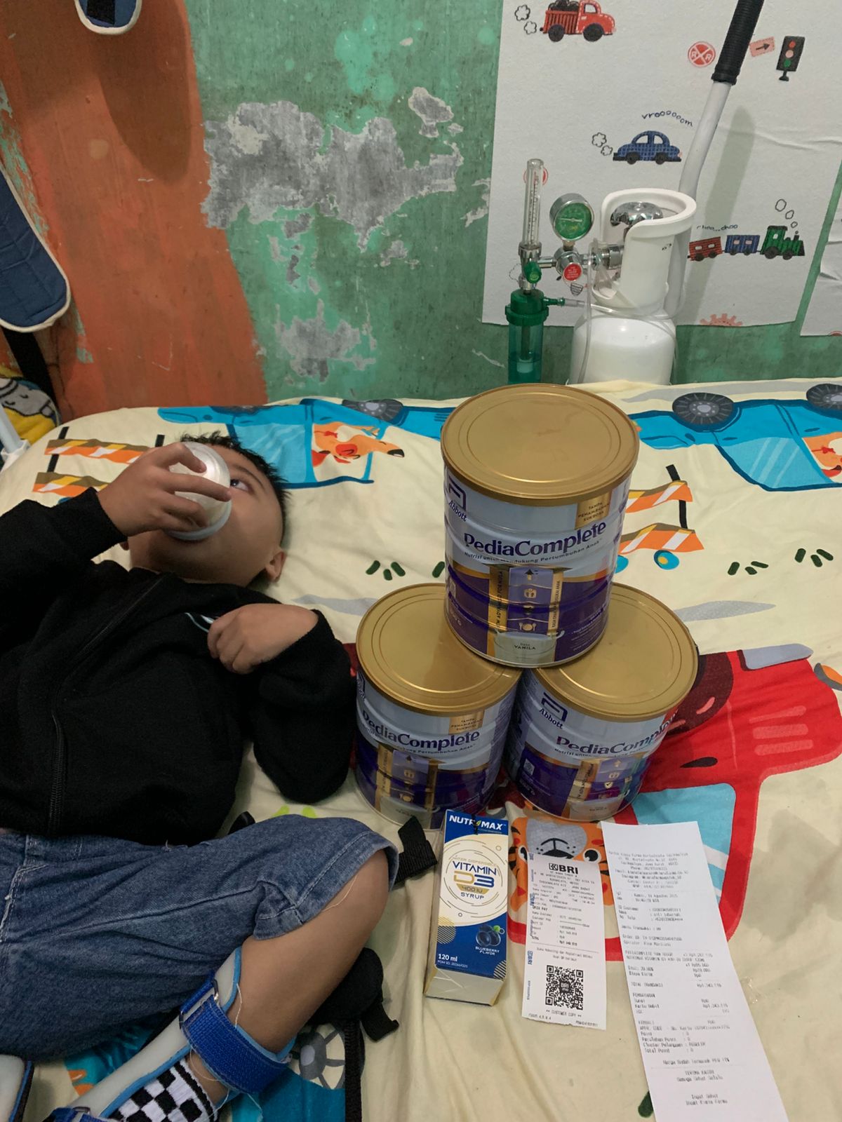 Oh Iya bantuan dari #TemanBaik sudah diterima dan dipergunakan untuk membeli susu dan biaya kebutuhan nutrisi Aziz selama di rumah sakit.