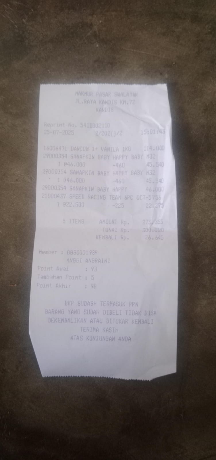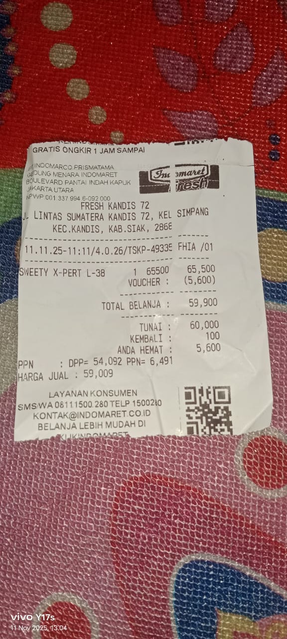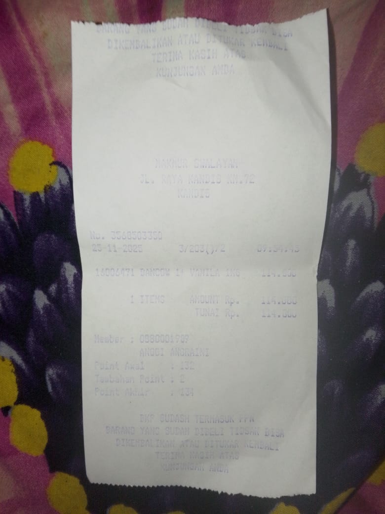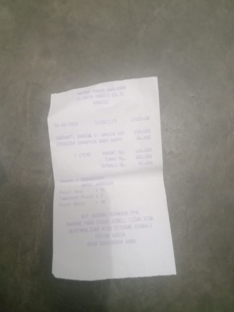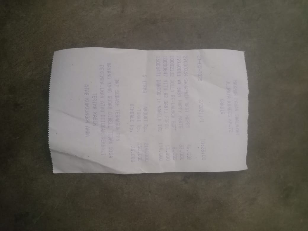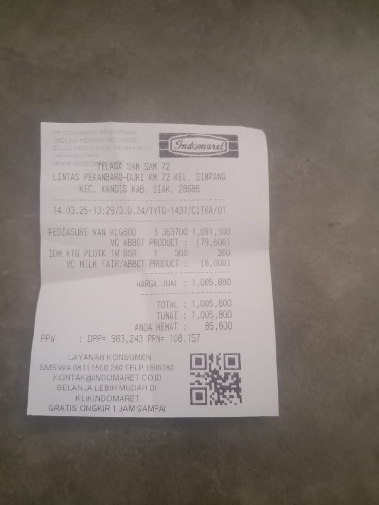Dana digunakan untuk 1. Susu pediasure Rp373.000 x 3kaleng = Rp 1.119.00 2. Susu dan caw 1kg Rp114.000 3. Pempes ukuran L sweety Rp60.0002025-11-25 09:24:01