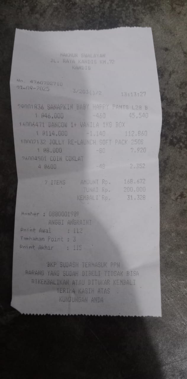 Alhamdulillah, uang susu sudah dibelanjakan untuk kebutuhan Azril, dan sisanya digunakan untuk tambahan makanan.