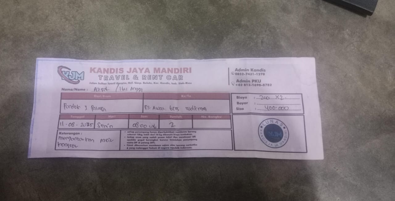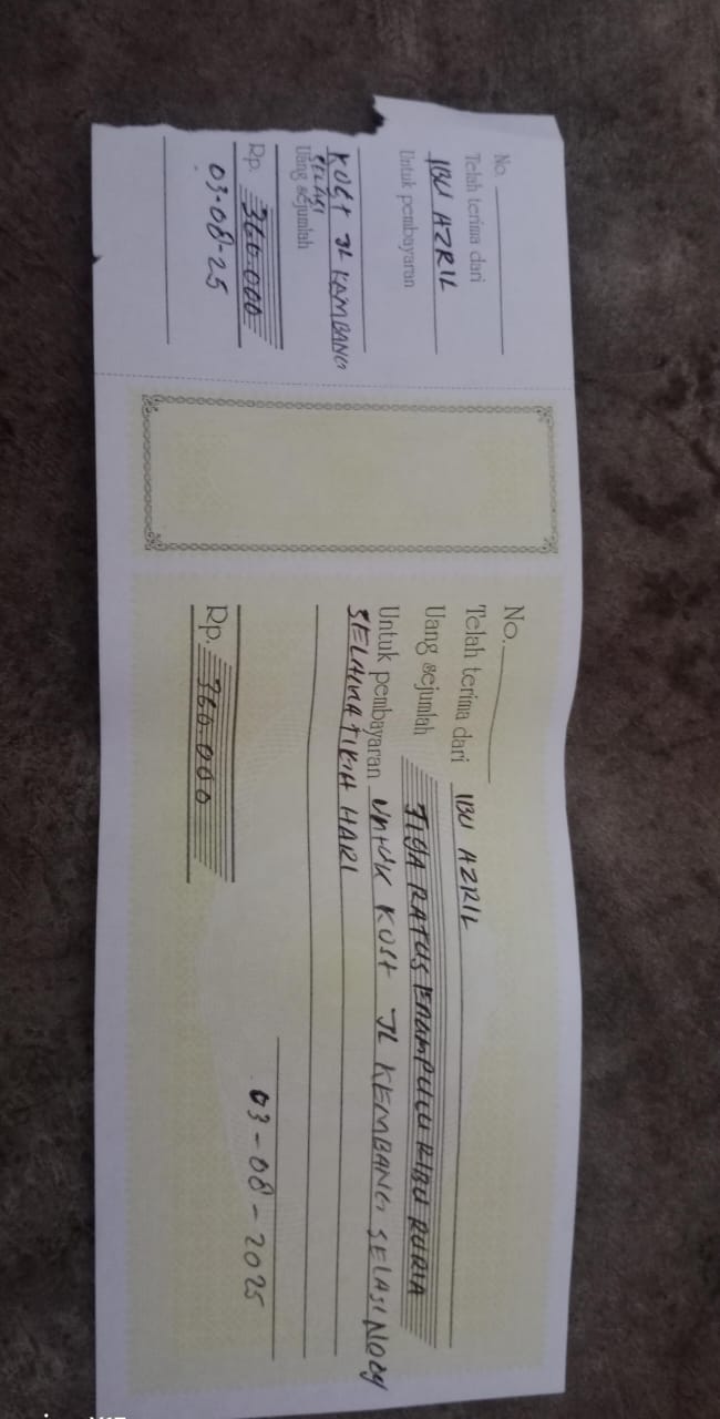 Dana digunakan untuk 1. Susu pediasure Rp364.000 x 3kaleng = Rp1.092.000 2. Susu dan caw 1kg Rp114.000 3. Pempes ukuran L Rp46.000 4. Travel dari pondok 1 palapa ke RS awalbros sudirman Rp400.000X 2 orang= Rp800.000 5 Biaya konsumsi kontrol Rp100.000 6. Reimburse Uang kos selama 3 hari Rp360.0002025-08-12 10:09:01