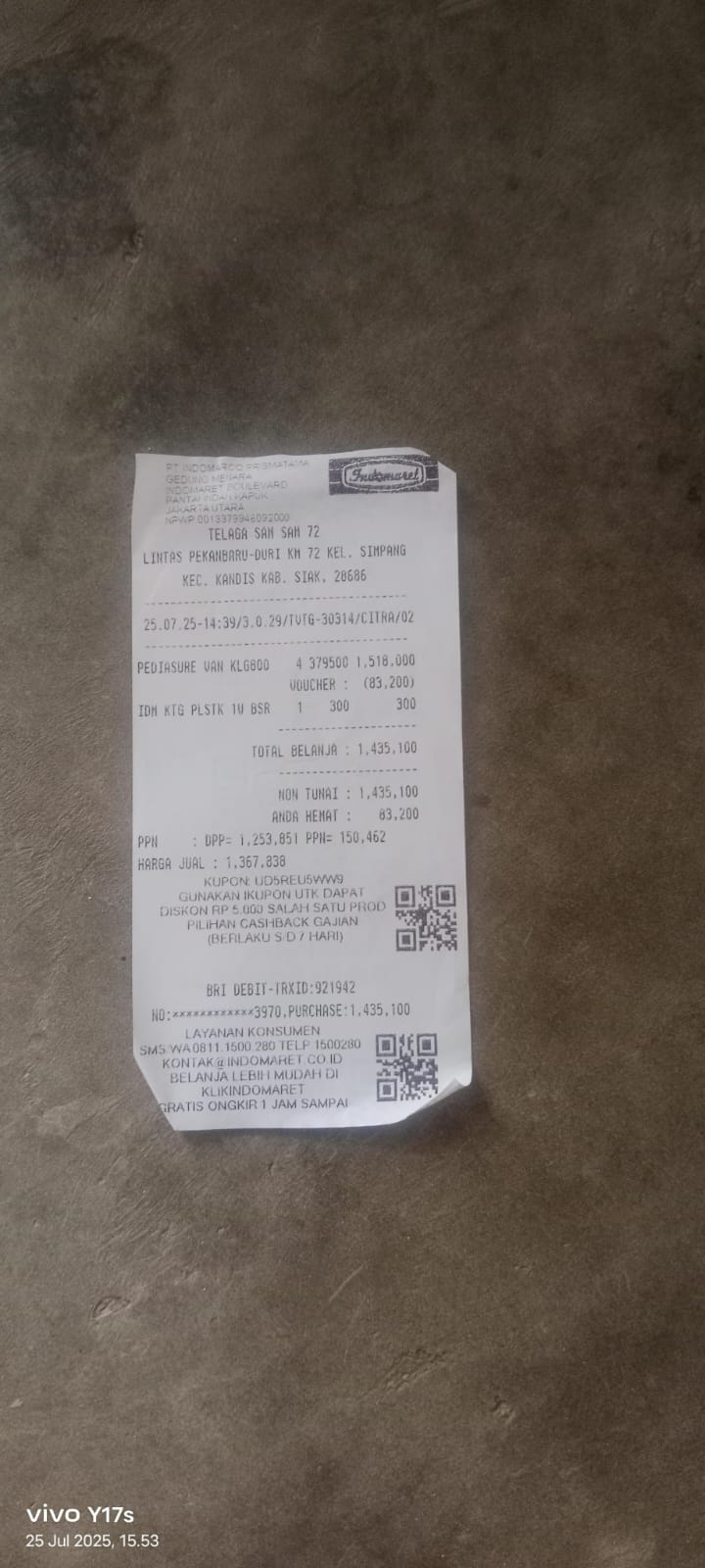 Dana digunakan untuk Pembelian susu pediasure 1 kaleng2025-10-17 15:26:07