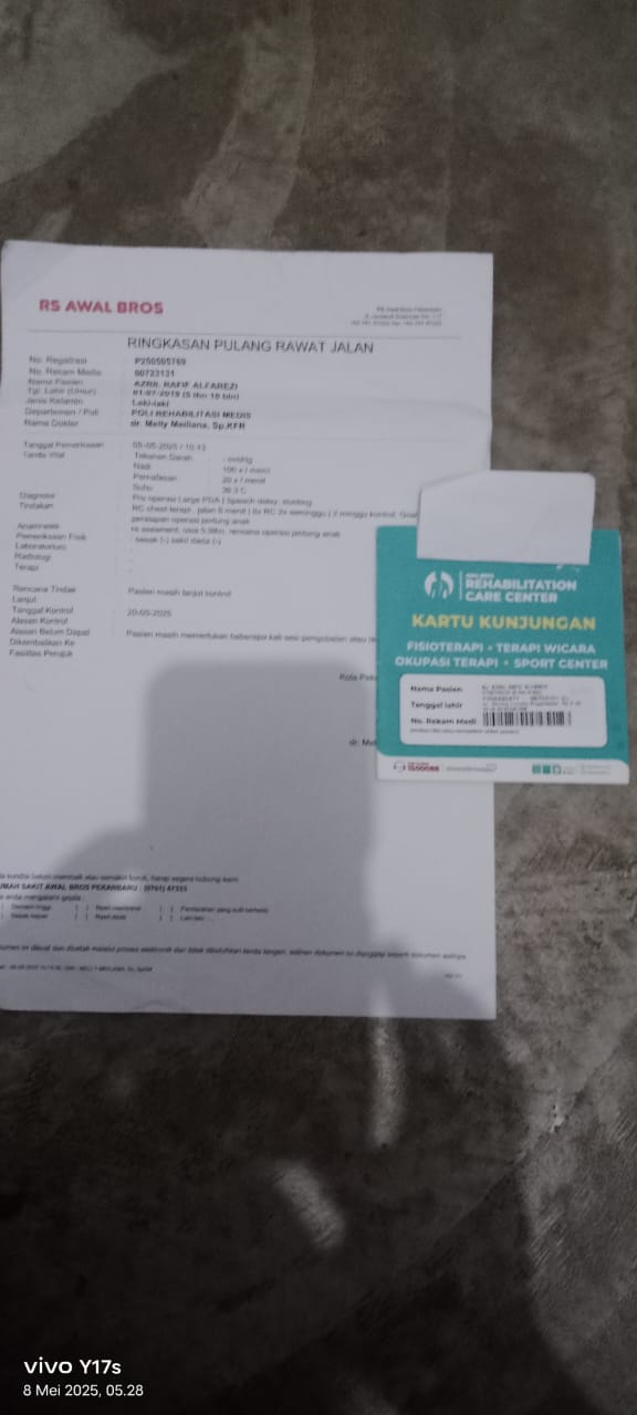 Alhamdulillah, kondisi Azril saat ini sehat dan semakin aktif. Pola tidurnya kini lebih teratur, dan ucapannya juga mulai terdengar lebih jelas. Untuk kontrol dokter jantung, jadwal Azril berikutnya adalah di bulan Desember. Obatnya masih cukup untuk satu bulan, setelah itu baru akan kontrol kembali.