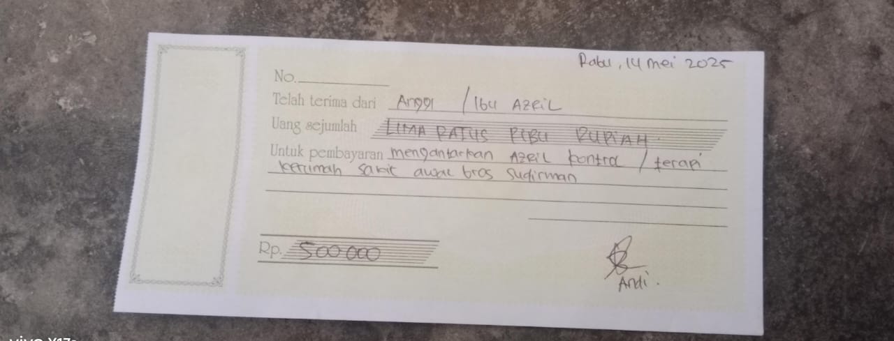 Alhamdulillah, terima kasih banyak atas bantuan yang telah diberikan untuk memenuhi kebutuhan Azril seperti susu dan popok. Donasi kemarin sudah digunakan, dan sisanya dipakai untuk tambahan kebutuhan lainnya. Sekali lagi, Azril mengucapkan terima kasih yang sebesar-besarnya.