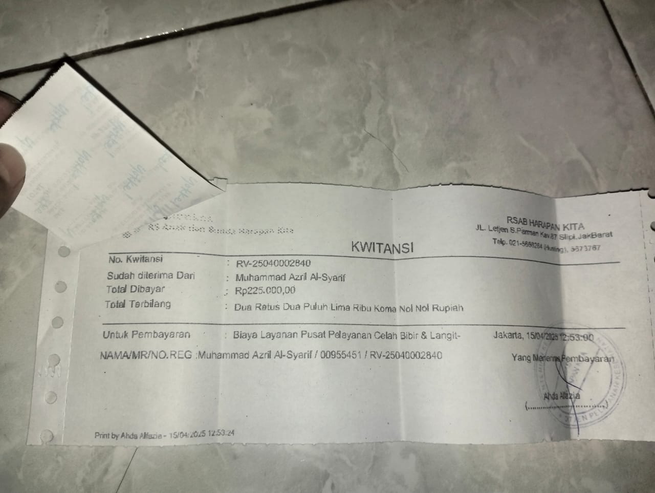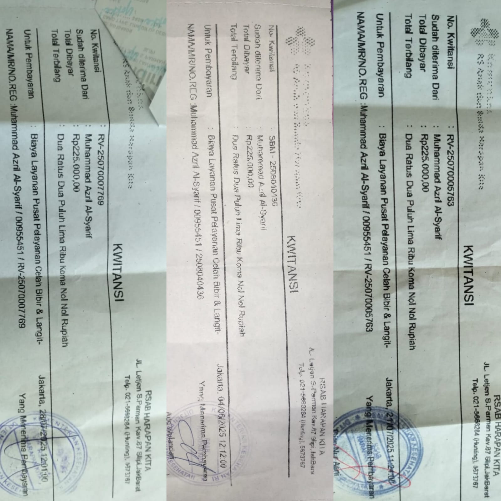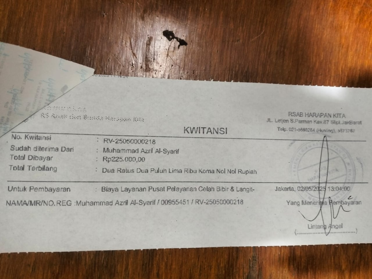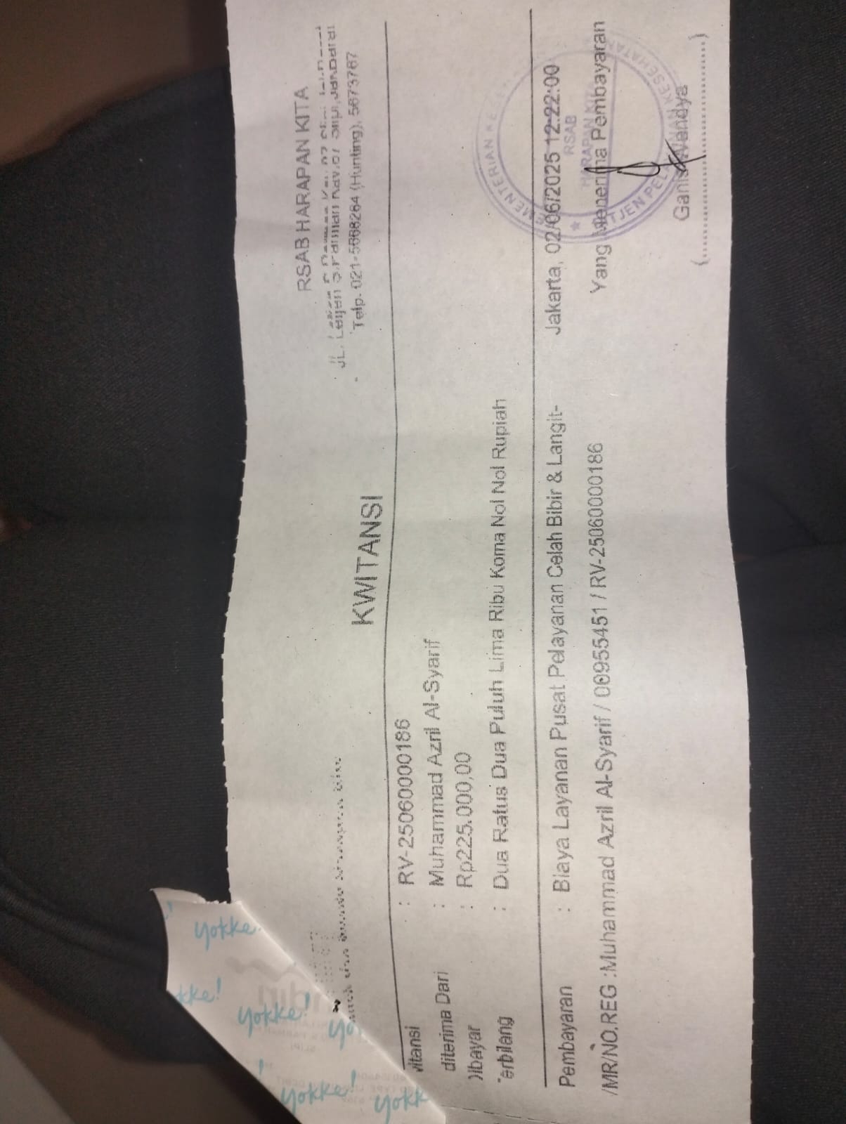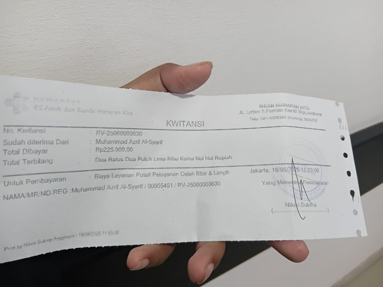 Dana digunakan untuk 1. Transportasi dari tempat tinggal ke RSCM Rp150.000 2. Kontrol bedah mulut Rp250.000 3. Terapi wicara Rp250.0002025-01-06 09:37:19