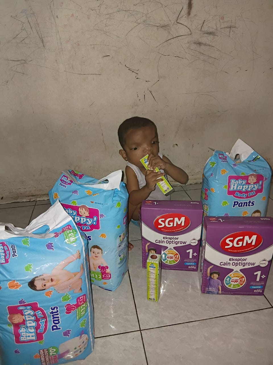 Sejak dalam kandungan, hasil USG anakku, Muhammad Azril Al-Syarif, sudah membuatku merasa khawatir karena menunjukkan adanya kelainan fisik. Begitu lahir, kondisi bibir Azril sumbing dan kepalanya seperti membengkak tak beraturan, kata dokter ada cairan berlebih di kepala Azril.