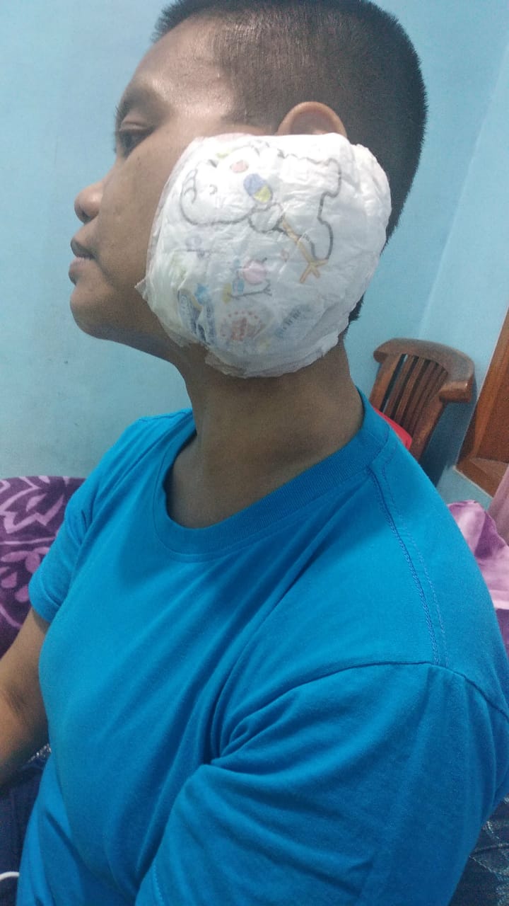Hai TemanBaik, nama saya Adang, pekerjaan sebagai petani. Istri anak saya, Eny menderita tumor parotis sejak tahun 2019. Tumor ini membuatnya tak bisa beraktivitas seperti biasa. Dia lebih banyak berbaring di tempat tidur karena merasakan sakit dan kepala pusing.