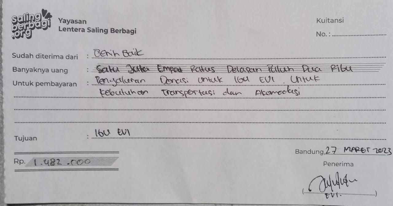 Ibu Evi mengucapkan banyak terima kasih yang tak terhingga atas bantuan dari TemanBaik semuanya.