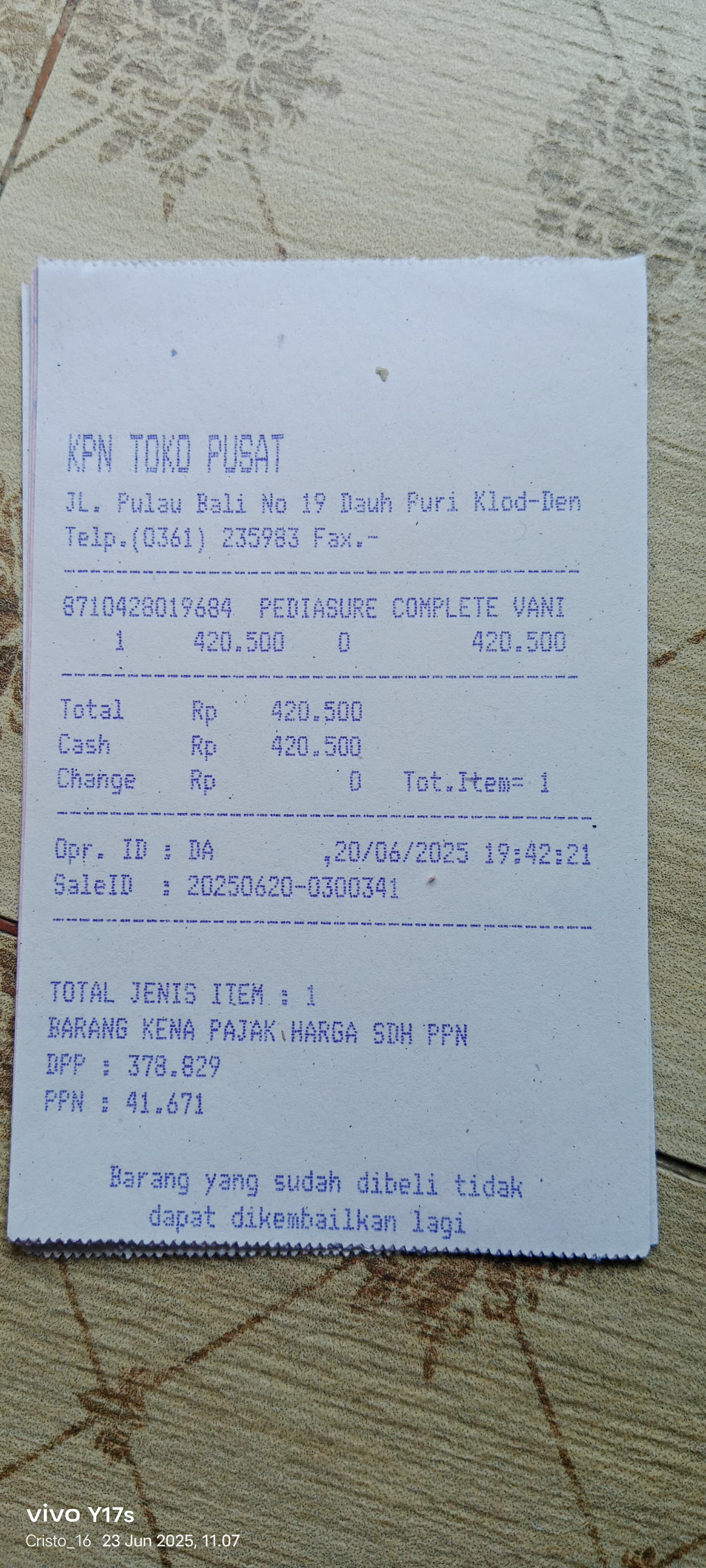 Dana digunakan untuk tambahan Susu Pediasure complete Rp 405.0002025-06-23 10:02:49