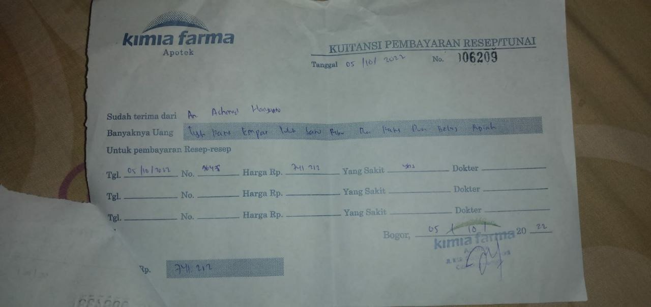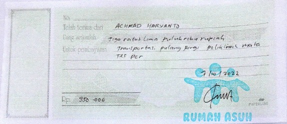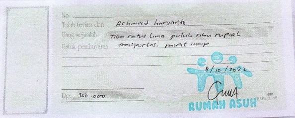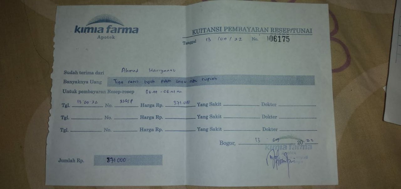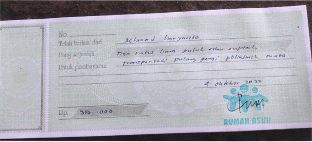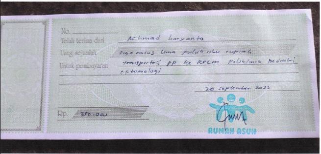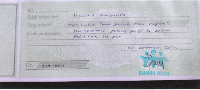 1. Transportasi pengobatan pulang pergi 350.000 x 3 Rp1.050.000