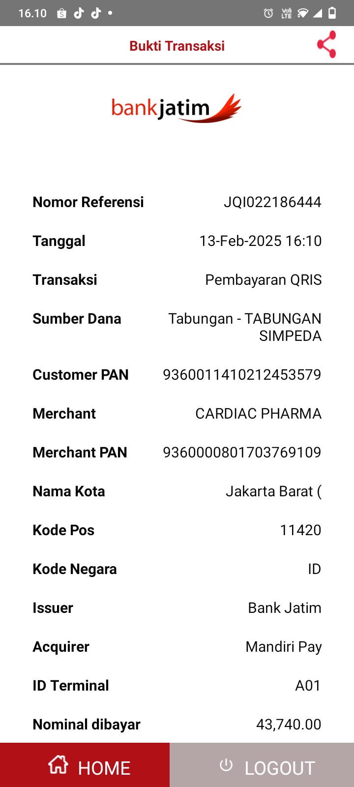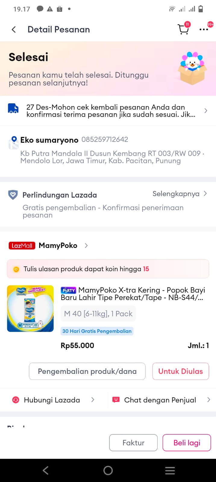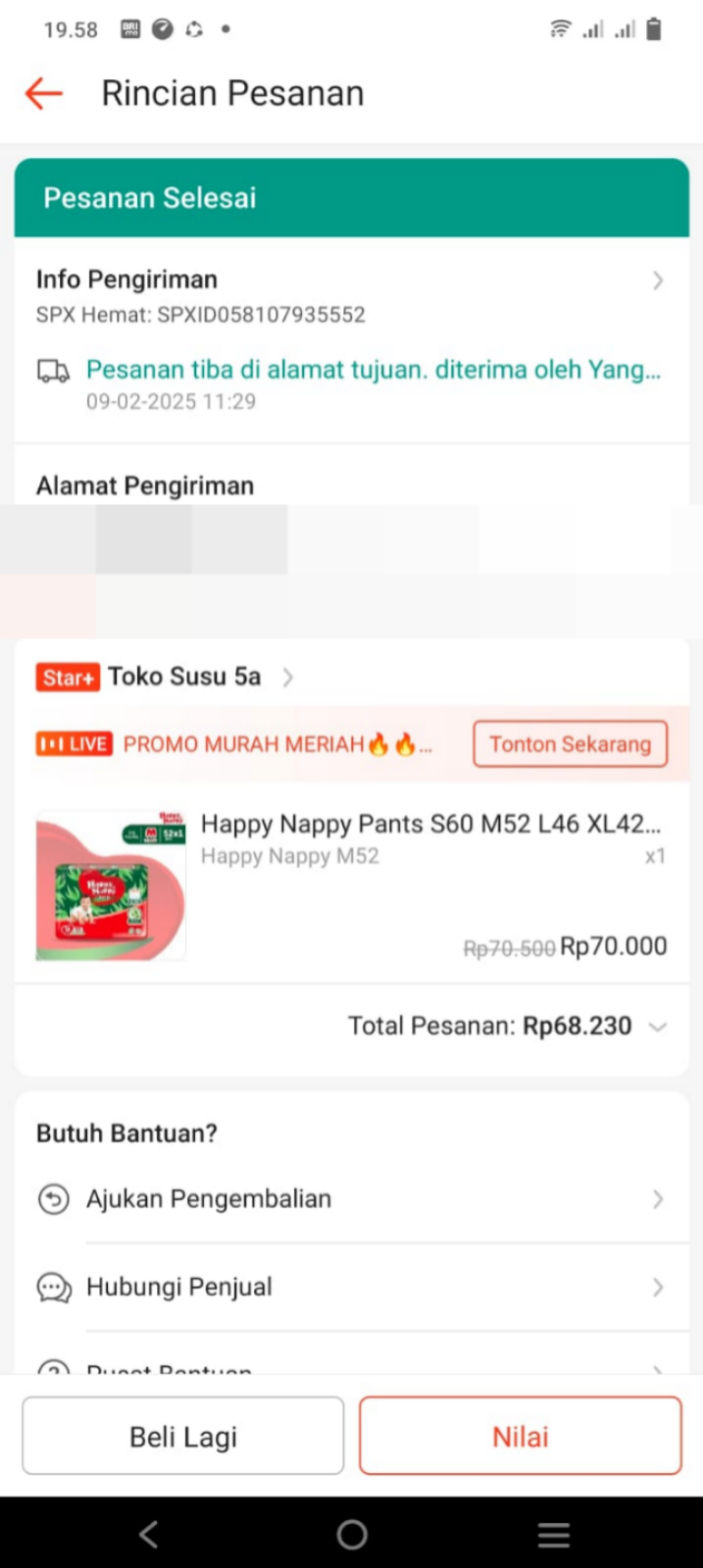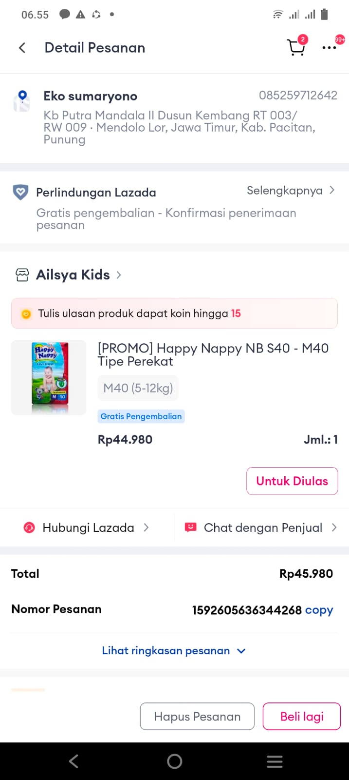 Dana digunakan untuk 1. Susu nutrinidrink 400 mg Rp200.000 x 2 dus= Rp400.000 2. Pampers Happy nappy M52 Rp70.000 x 2 ball= Rp140.000 3. Vitamin Madu shoney Rp82.500 x 2 botol = Rp165.000 4. Obat Catropil Rp43.000 5.Poli online RS Harapan Kita Rp150.0002025-02-21 09:21:33