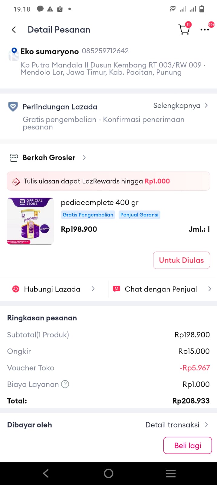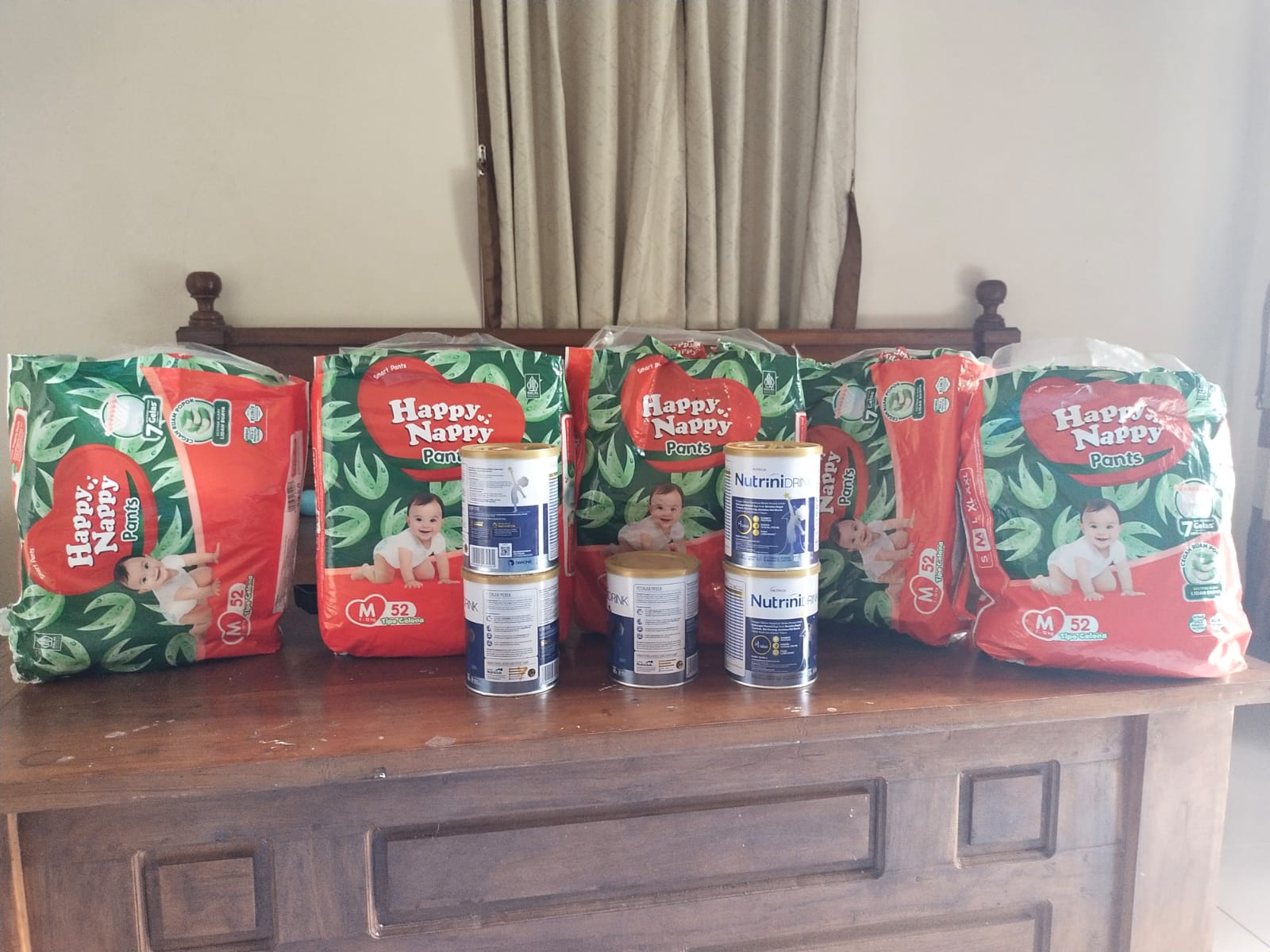 Dana digunakan untuk 1. Susu pedia complete 400gram Rp200.000 x 2 kaleng = Rp400.000 2. Pampers ukuran m isi 40 2 bal Rp100.000.2024-12-27 08:50:21