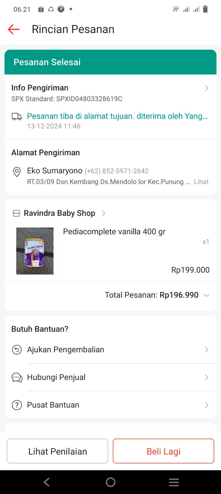 Dana digunakan untuk 1. Susu Nutrinidrink 400 g Rp200.000 2. vitamin interlac 5 ml Rp375.000.2025-01-31 09:05:00